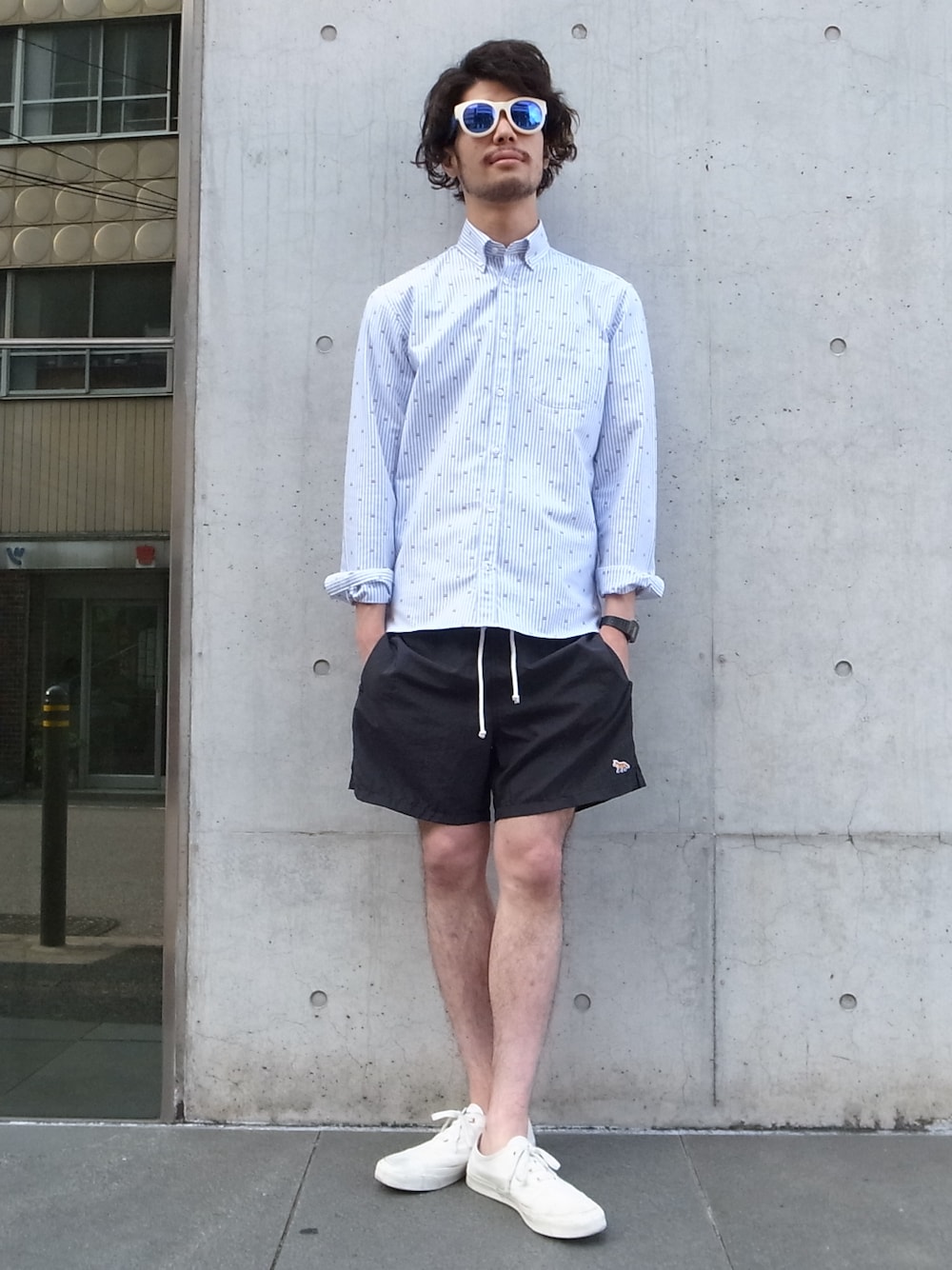 前のコーディネートに引き続き、スイムショーツを取り上げたBLOGのスタイルです! KITSUNEのスイムショーツはシンプルな中に品があるので、普通に町ではきたくなります。 シャツでカチッと合わせれば、水着には見えませんね。笑 ミラーのサングラスを合わせてスポーティーなテイストをプラスしています! この写真のドヤ感が自分でむかつきます。。笑 そしてもっと膝上ショーツをはきこなせるようになりたいです、、、
