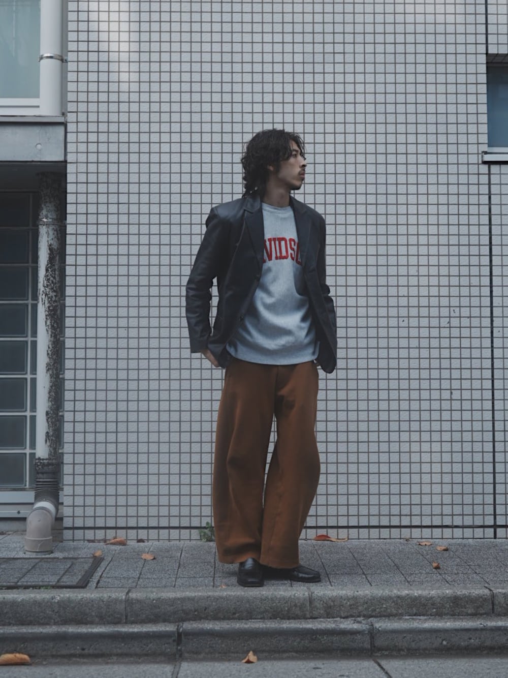 ジャージーワイドパンツやスウェットなどラフなアイテムを合わせつつレザージャケットで締めました︎︎︎!