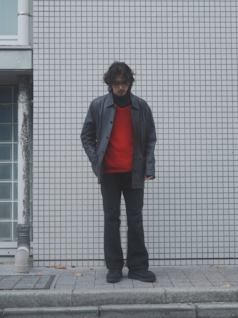 ブラックをメインに差し色として赤のニットを合わせています☺︎