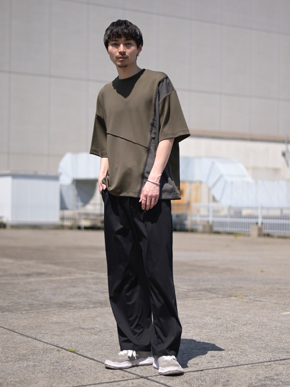 YUTAKA( PUBLIC TOKYO 本社 M)のTシャツ/カットソー「オーバーサイズダンボール半袖Tシャツ|接触冷感/吸水速乾/抗菌防臭/UVカット/ハイストレッチ」を使ったコーディネート
