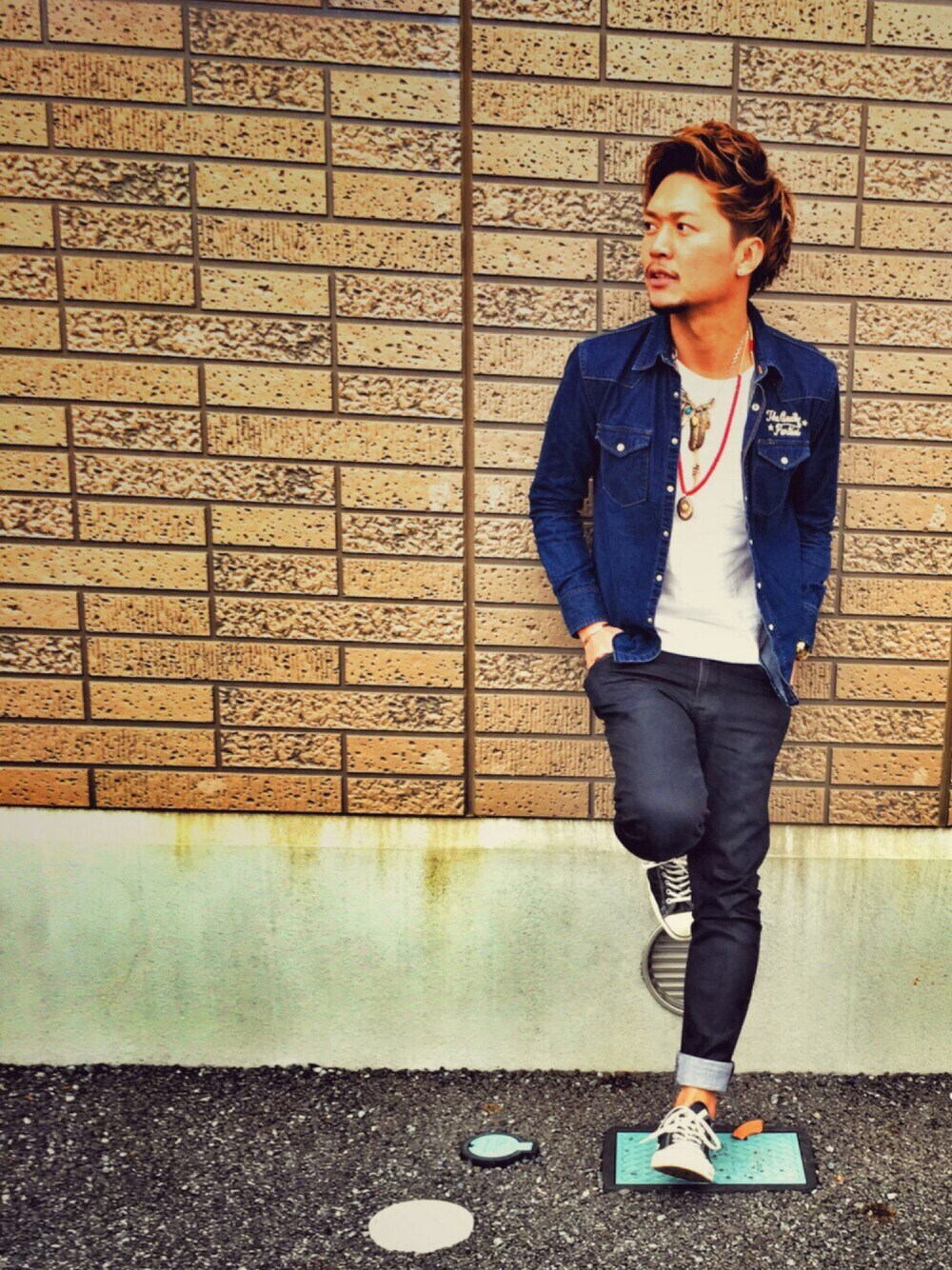 今日はちょっと前の三代目JSBのvocalの方風のセットをしてみました!笑 ワコマリアのデニムシャツはお気に入りですʕʘ̅͜ʘ̅ʔ 刺繍が素敵です✴︎✴︎