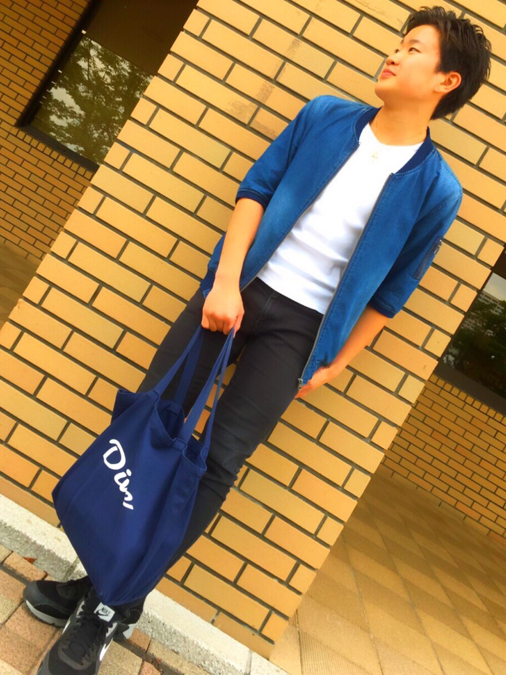 カジュアルでキレイめなコーデ MA_1の生地も薄いから梅雨の時期にピッタリ インディゴ染めだから使う度に味が出るからオススメです。 インナーはピタって着たいのでXSです
