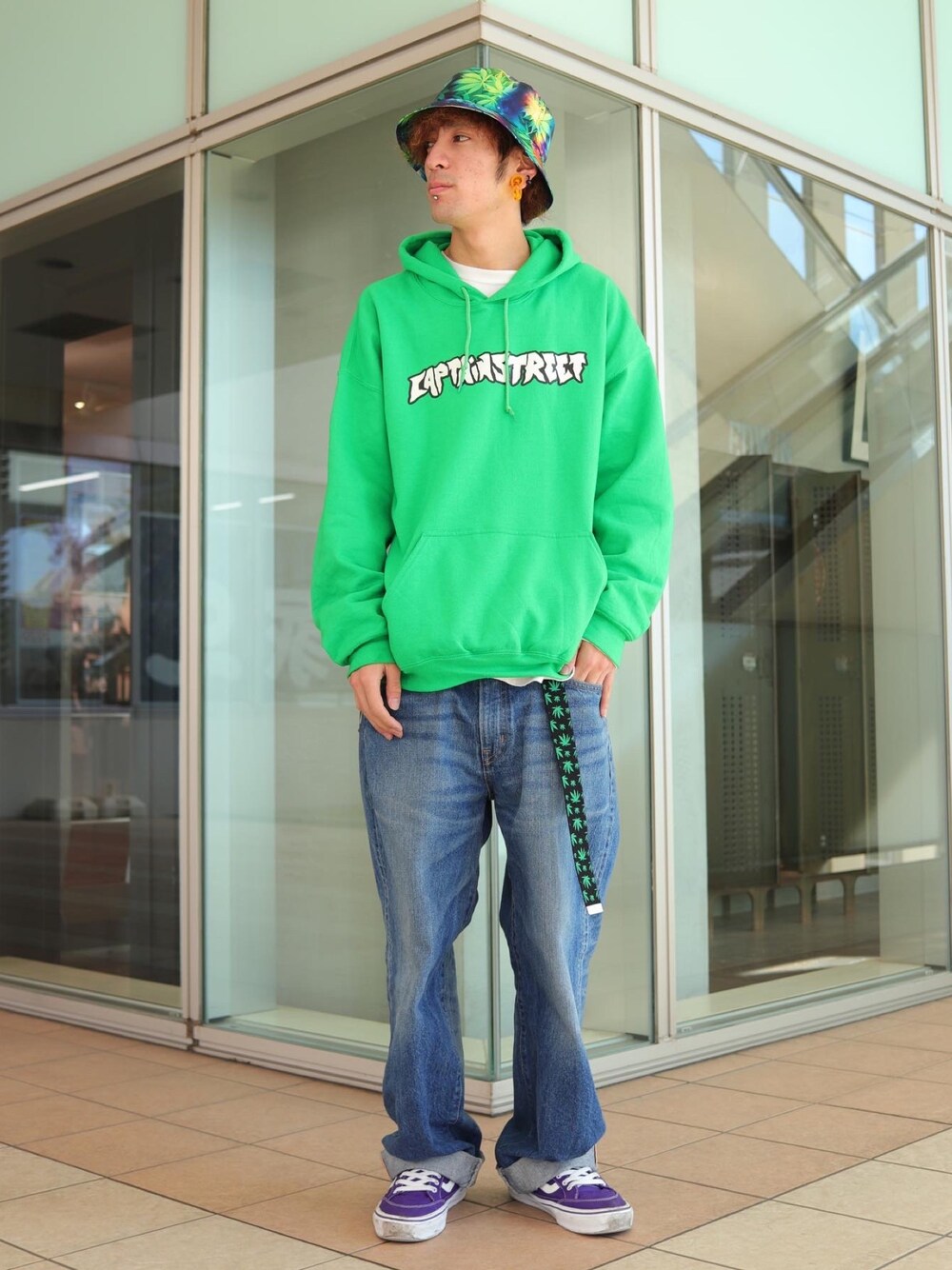 オーバーサイズのパーカーとワイドストレートのデニムのコーディネート。 パンツはEDWINの505です。 元々がかなり太めですが、更にシルエットを出すためにワンサイズアップの29inchで着用。