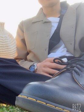 「Dr. Martens(ドクターマーチン)のDr.Martens/1461 3EYE GIBSON SHOE 3ホール ギブソン シューズ R11838002 R11838600(ブーツ、ブラック系)」を使った、kawさん(メンズ)の春コーディネート