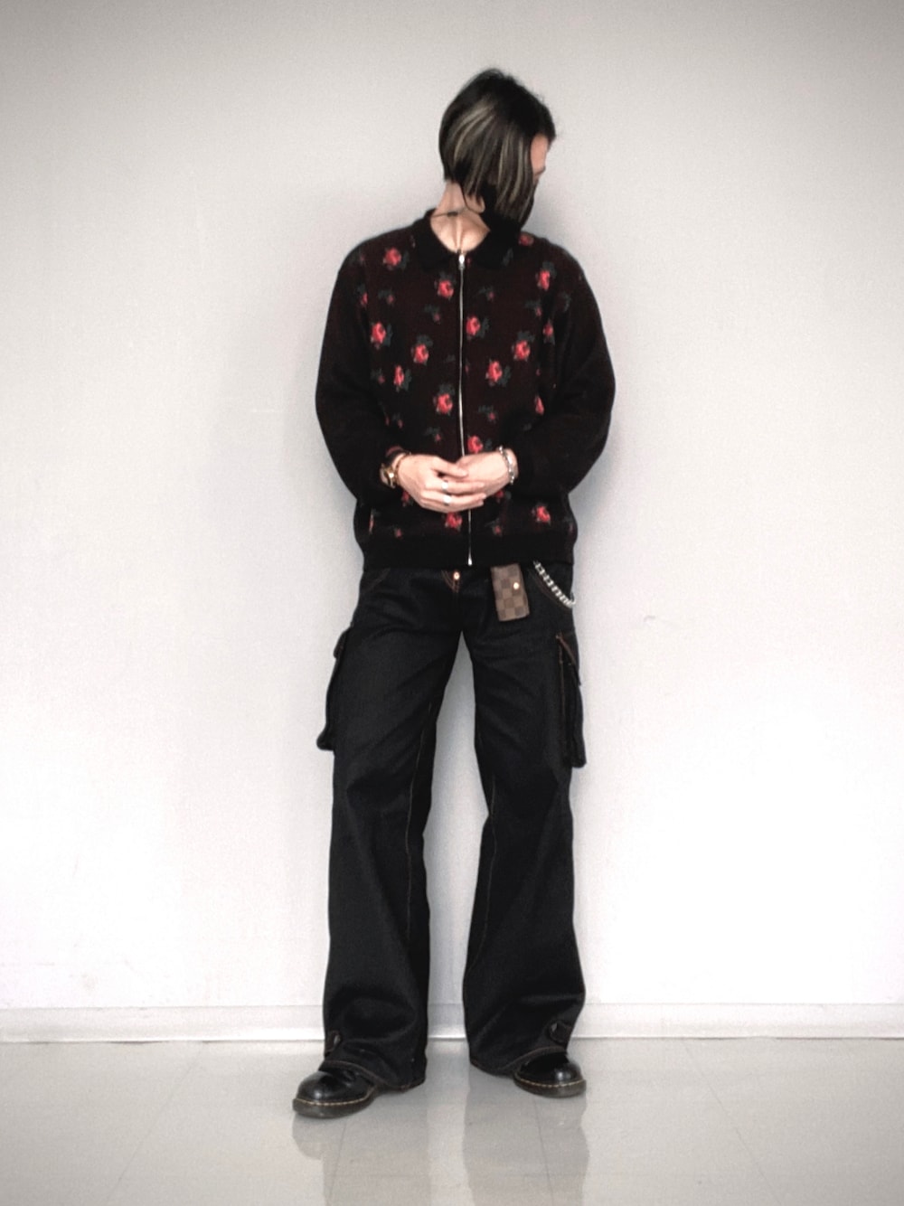 . Day21 . Instagram : @___no_va_ . outer : @hm inner : @tttmsw.tokyo pant : @tomworks_official shoes : @drmartens_japan walletchain : vintage belt : @gucci keycase : @louisvuitton accessory : vintage .