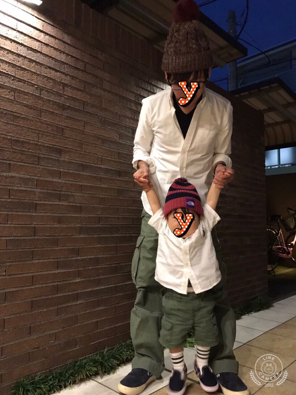 お揃いコーデ😊✨ ノースフェイスのニット帽もお揃いが欲しかったけど、無くて残念😫 女性ものニット帽だけど、ご愛嬌☺️
