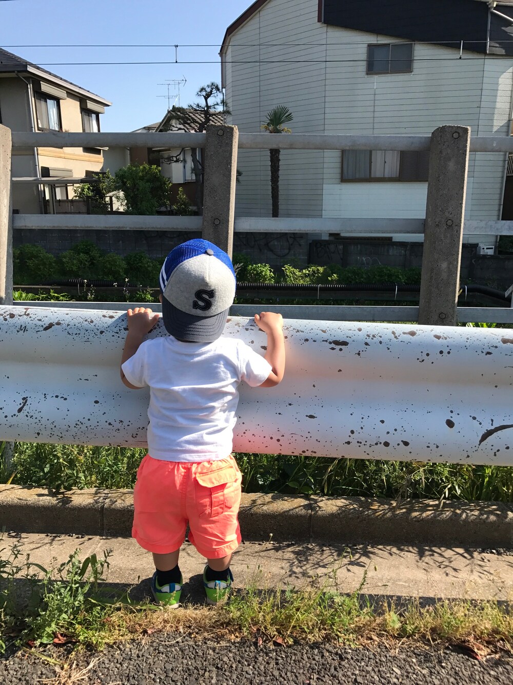 電車を待つ子供❗️ 電車は見たいけど… 暑くて辛そう😅