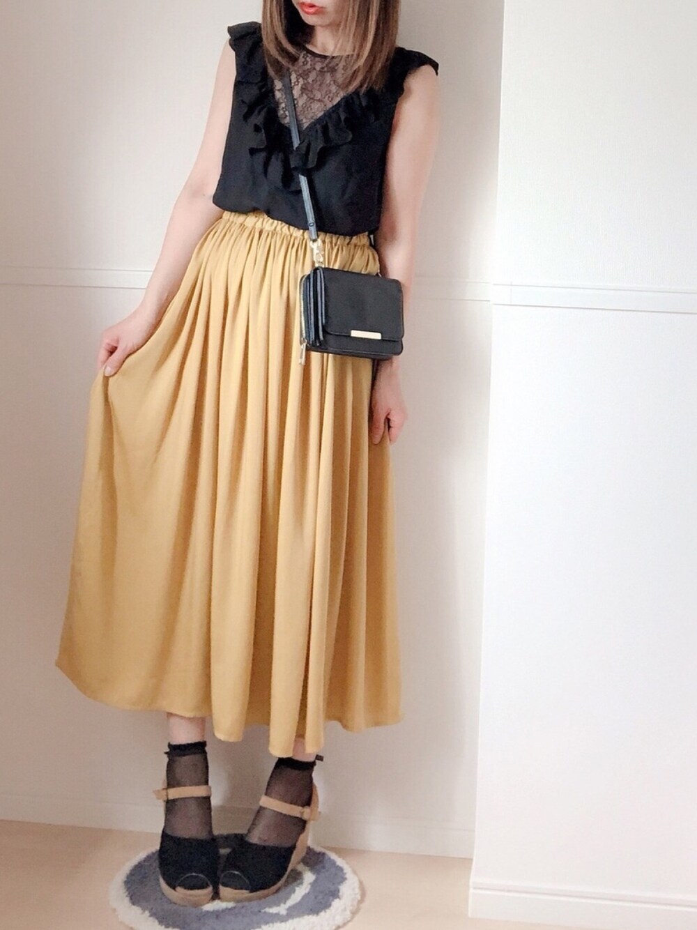見に来て下さりありがとうございます❁ イエローとブラック サラリとした生地が履いてて気持ちの良いスカート🤗🍃 ちょっと夏色にしてみました🌞🌻 Instagram/coco__hitomi