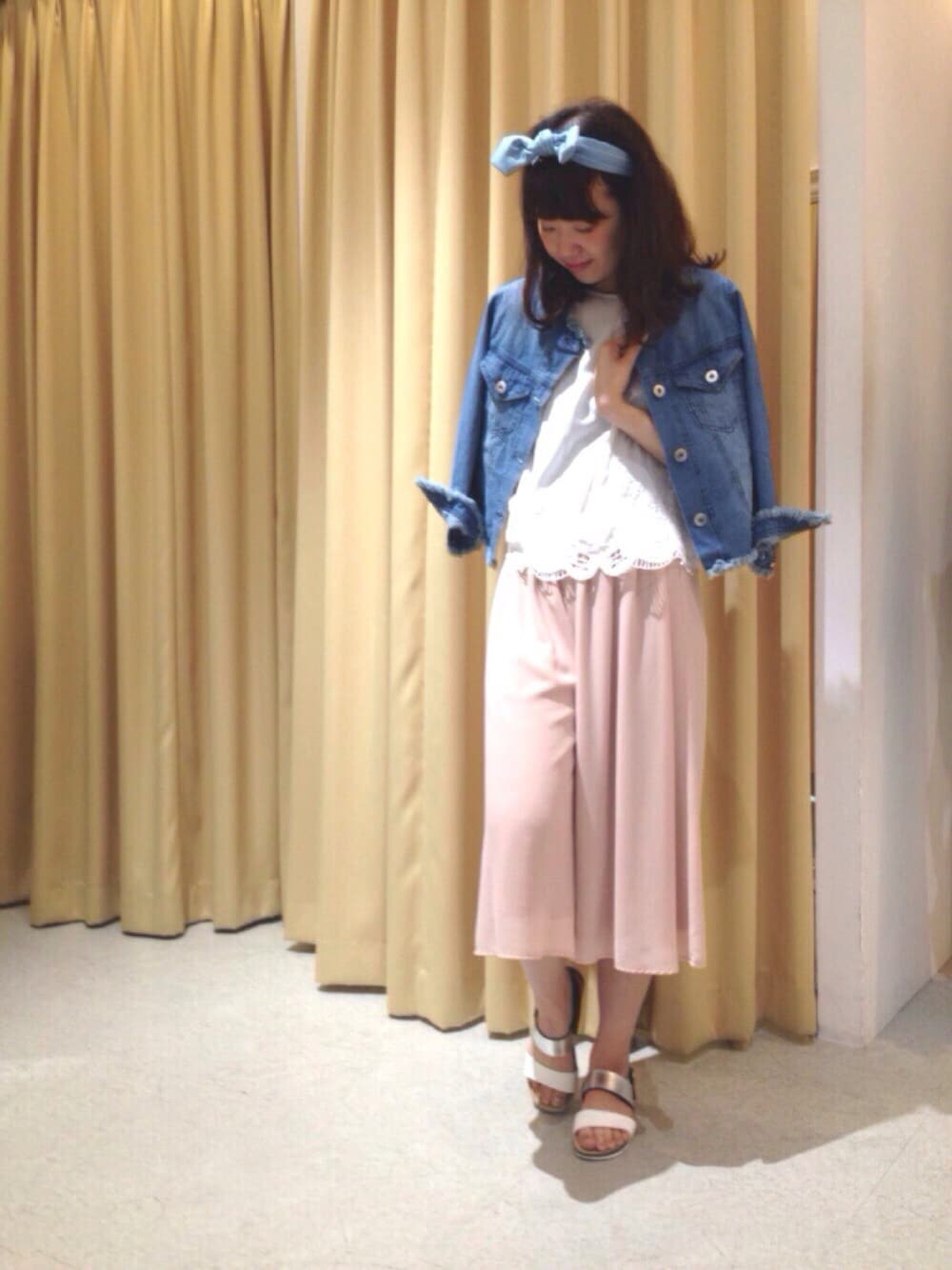 お疲れ様ですっ💕 今回はスカンツにカットワークの可愛いブラウスと合わせてみました😳❤️ ピンク色は女の子な感じで気分が上がりますねっ(♥´꒳`*)(*´꒳`♥) デニムJKは切りっぱなしデザインになっていてstaff中でも人気のアイテムです😉✨👍🏻 頭にポイント🌟 決してお風呂上がりではないですからね😂💕 よい週末をお過ごし下さいませ💐 ありがとうございました💕