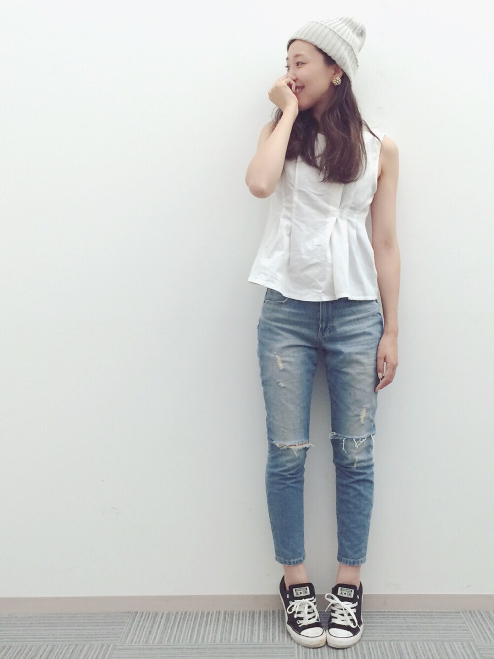 今日のコーデ☺︎ きれいめブラウスに ちょっいスポーティたし꒰ ´͈ω`͈꒱