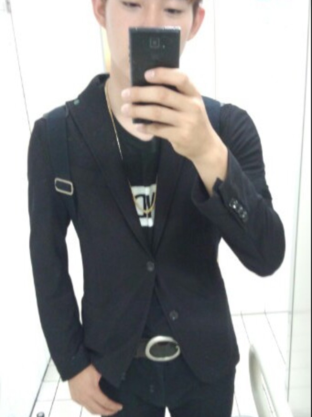 ジャケット:ZARA シャツ:TOPMAN パンツ:HARE ネックレス:TOPMAN ZARAのジャケットは夏でも着れるくらいで光を当てれば透けるくらいの薄さで触り心地がよく着やすいアイテムです。 黒一色コーデもなかなかお気に入り