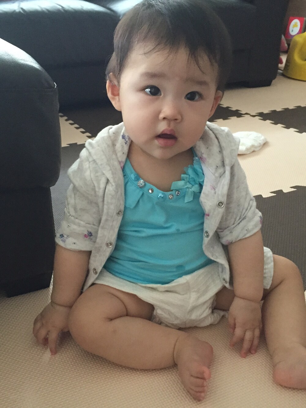 9ヶ月になりました。 まだつかまり立ちは出来ません。 オムツ散乱中。 謎のトルコ土産のキャミソールを着てみたけど、1枚では少し涼しいね。