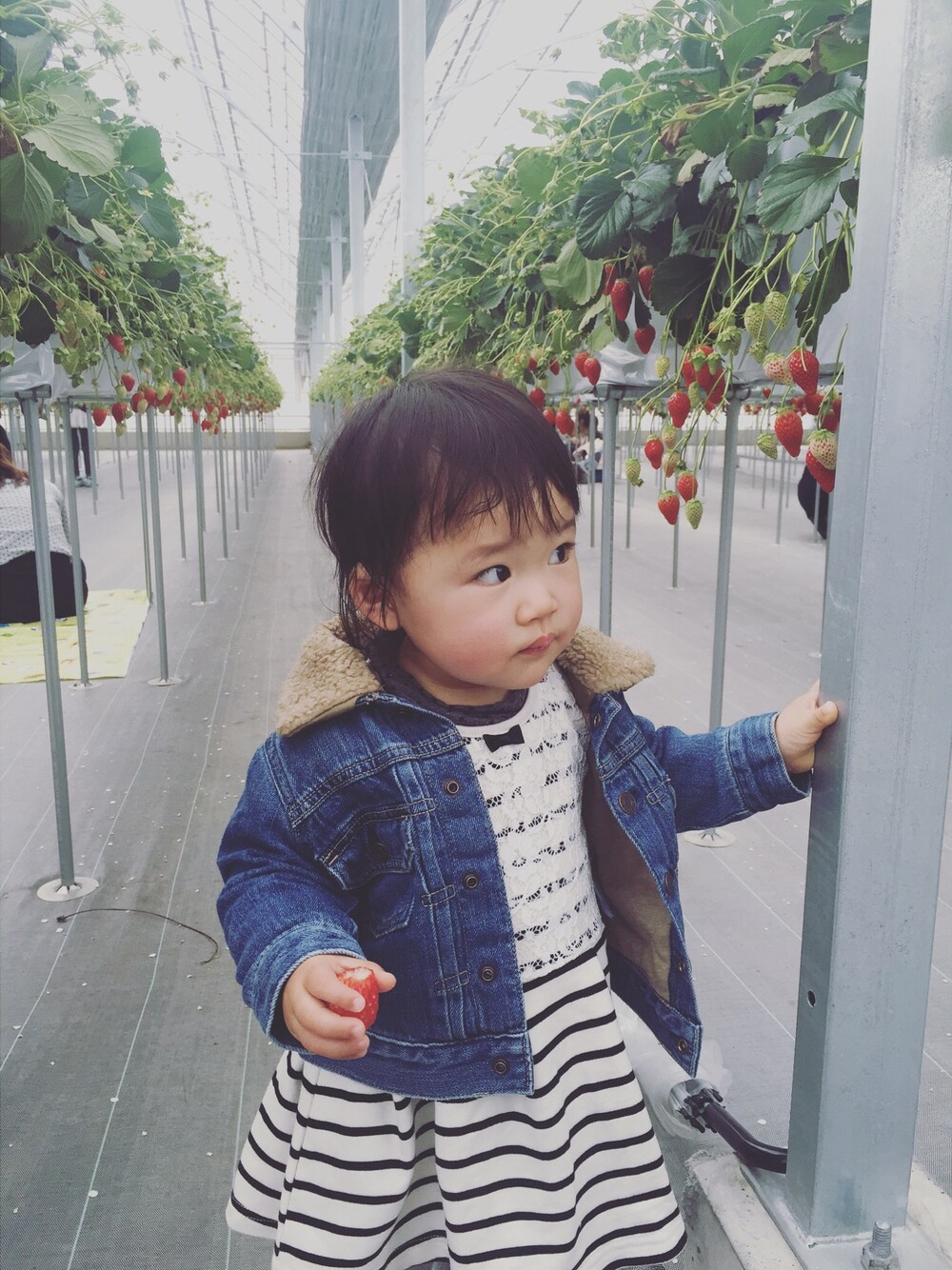 イチゴ狩り。 1歳3ヶ月。17個完食。 ご立派😂