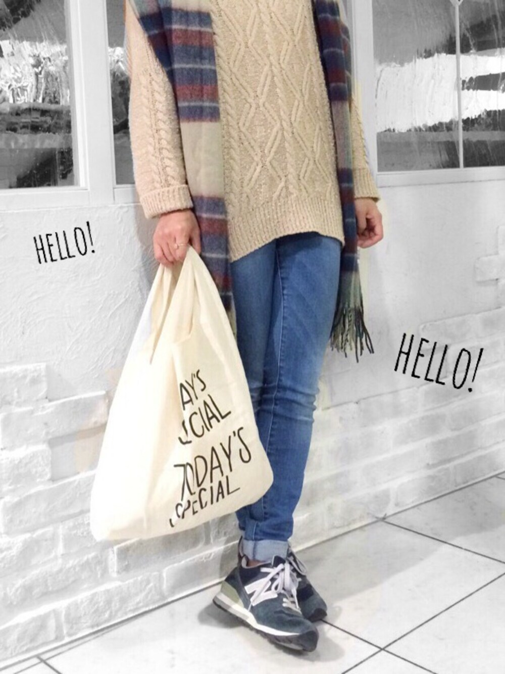 こんばんは☺︎☺︎☺︎ シンプルに、 ゆるニット×デニム×スニーカーで 合わせました。 東京で 買ったtoday'sspecialの マルシェバック いっぱいはいるので、 とぉーっても便利です。 毎日、 お弁当に水筒にお菓子に 色々入れちゃってます(笑) ニット...sanjuan ストール...sanjuan デニム...UNIQLO スニーカー...ニューバランス バック...today'sspecial