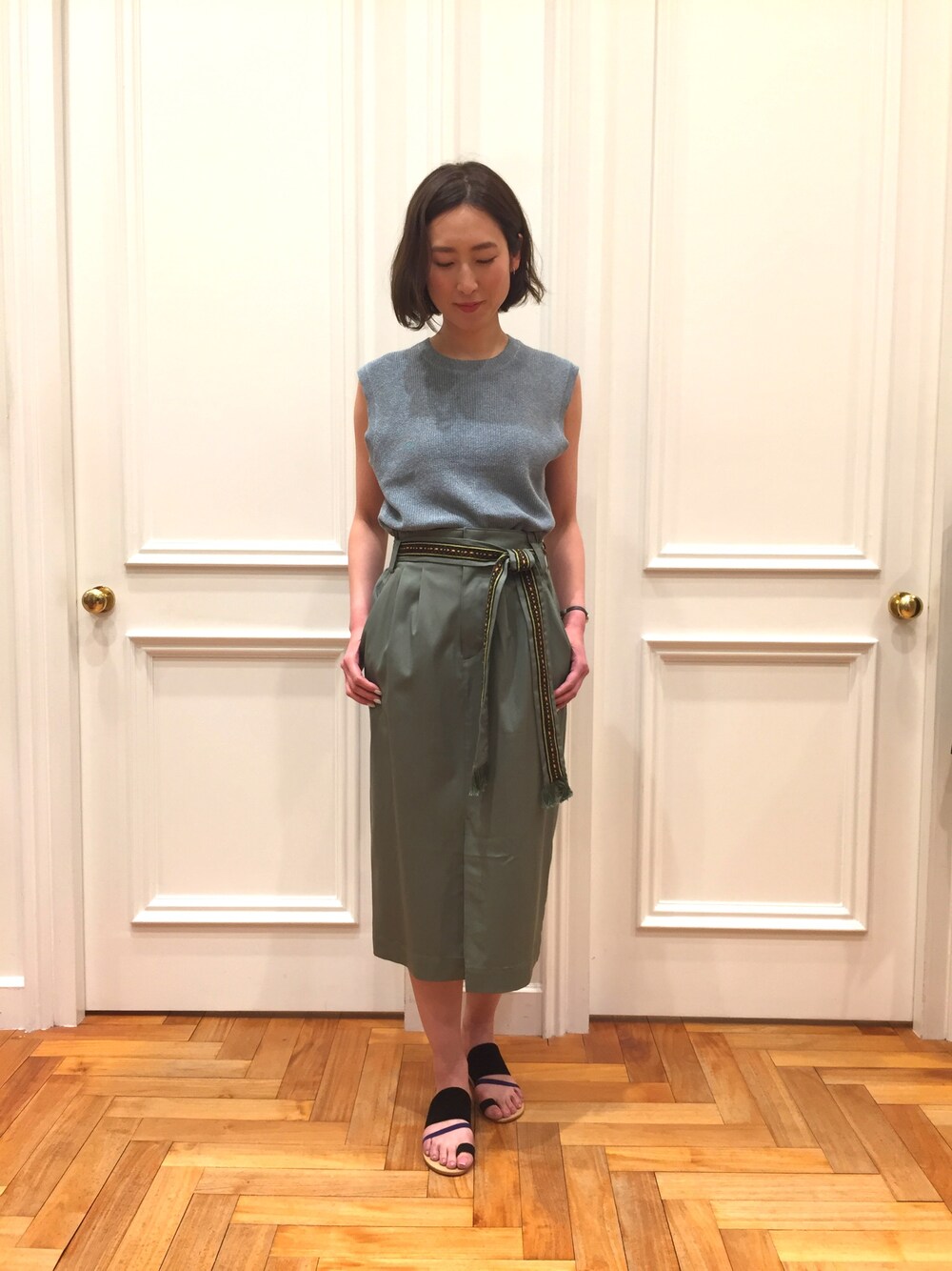 刺繍ベルトがポイントのスカートを女性らしく...💕