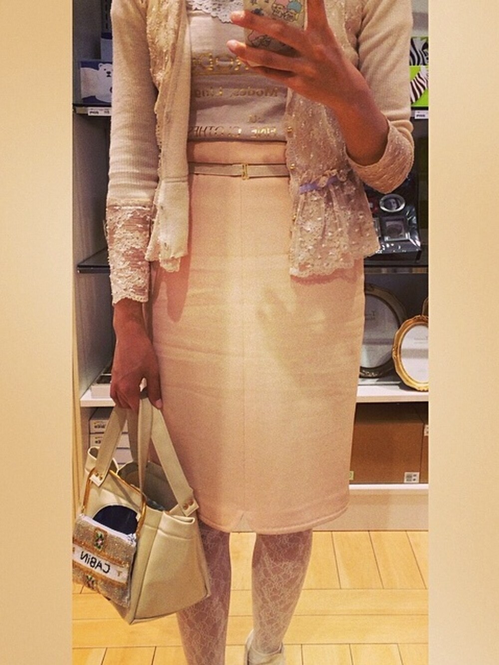 tops:THEATRE PRODUCTS skirt:古着 bag:THEATRE PRODUCTS tights:tabio ピンクベージュの ワントーンコーデ レース ♡ »-♡→