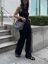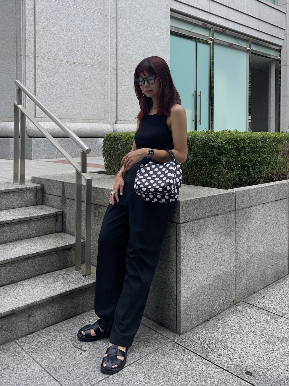 2WAYで使えるミニバッグをget 🐼 見た目はコロンとしていて小さめのバッグだけど ポケットが多く収納力があって、小物も整理しやすい◎ リップとか鏡とか充電器とかスペースを分けてしまえるの嬉しい🦦🤍 オールブラックコーデでバッグが映える! 柄があっても統一感のあるきれいめカジュアルコーデにしました🪄