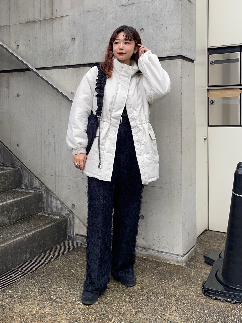 UKIのショルダーバッグ「CONTROL FREAK(コントロールフリーク)シアークロワッサンバッグ」を使ったコーディネート