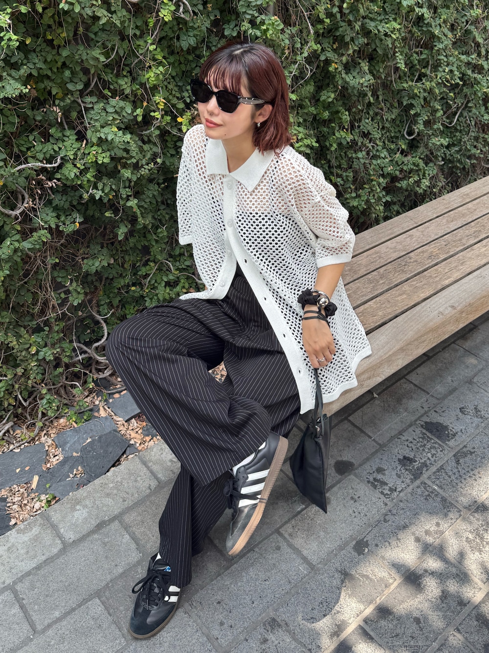 UKIのスラックス「ストライプワイドスラックス」を使ったコーディネート