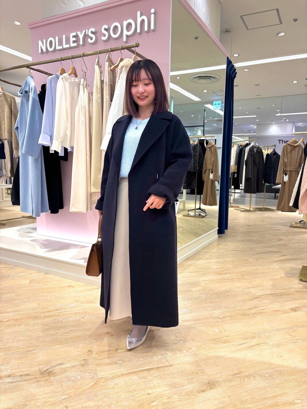 大人気のベルテッドコート! ハンドステッチの高級感あるデザインが素敵です✨ フロントホックで留めると中のトップスが絶妙に見えるフォルムに!!ネックレスがあるとよりエレガントになりそうです🤗 毛玉になりにくく長くご着用頂けます!! 前を開けてトップススパンコールが散りばめられたニットで華やかに!レイヤードっぽく1枚で着用できるオシャレニット! コートと合わせるとコートのネイビーでカラーバランスが引き締まります!☝️ ボトムスは色違いでリアバイしたスエードフレアスカート!✨ コートから見えるベージュの明るい色味が際立ちます🤗 オシャレなバッグに新作のキーチャーム! 今回はゴールドにしました✨ ぜひ店頭にてご覧くださいませ☺️