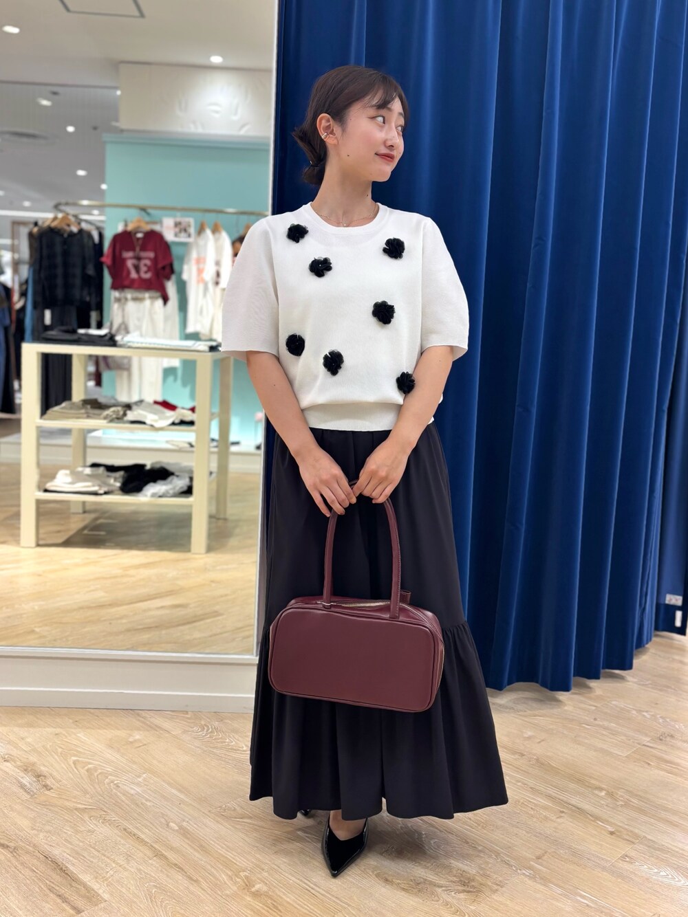 Yuuki(ノーリーズ小田急町田店)のニット/セーター「《手洗い可能》チュールフラワー付きフォルムプルオーバーニット」を使ったコーディネート