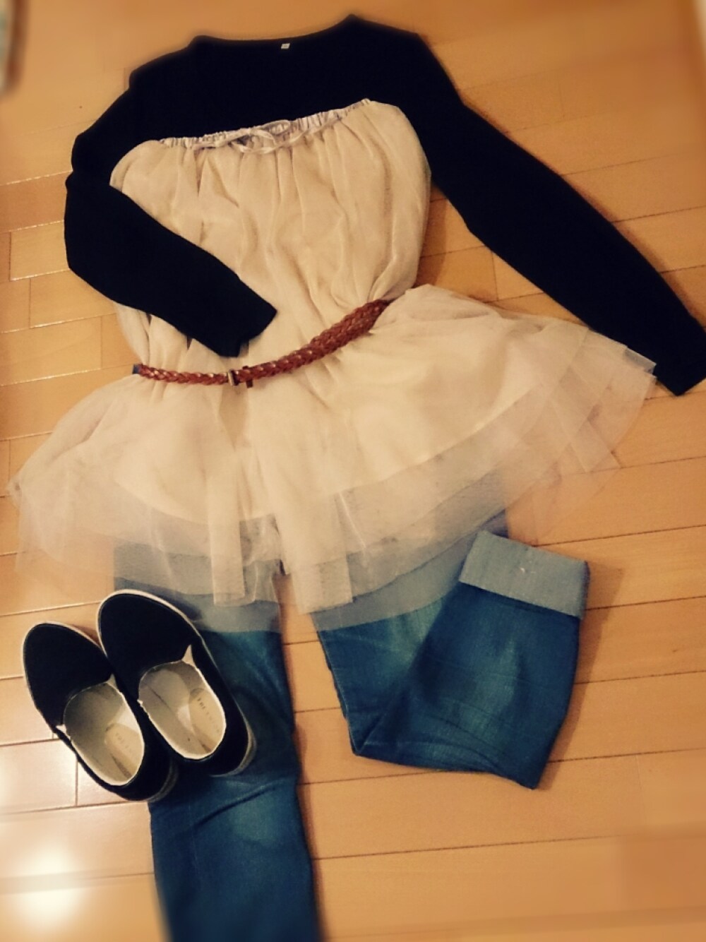 ホワイト系のスカート、ゴールド系のピアス(両耳用)を着用したレディースの春コーディネートの1枚目の写真