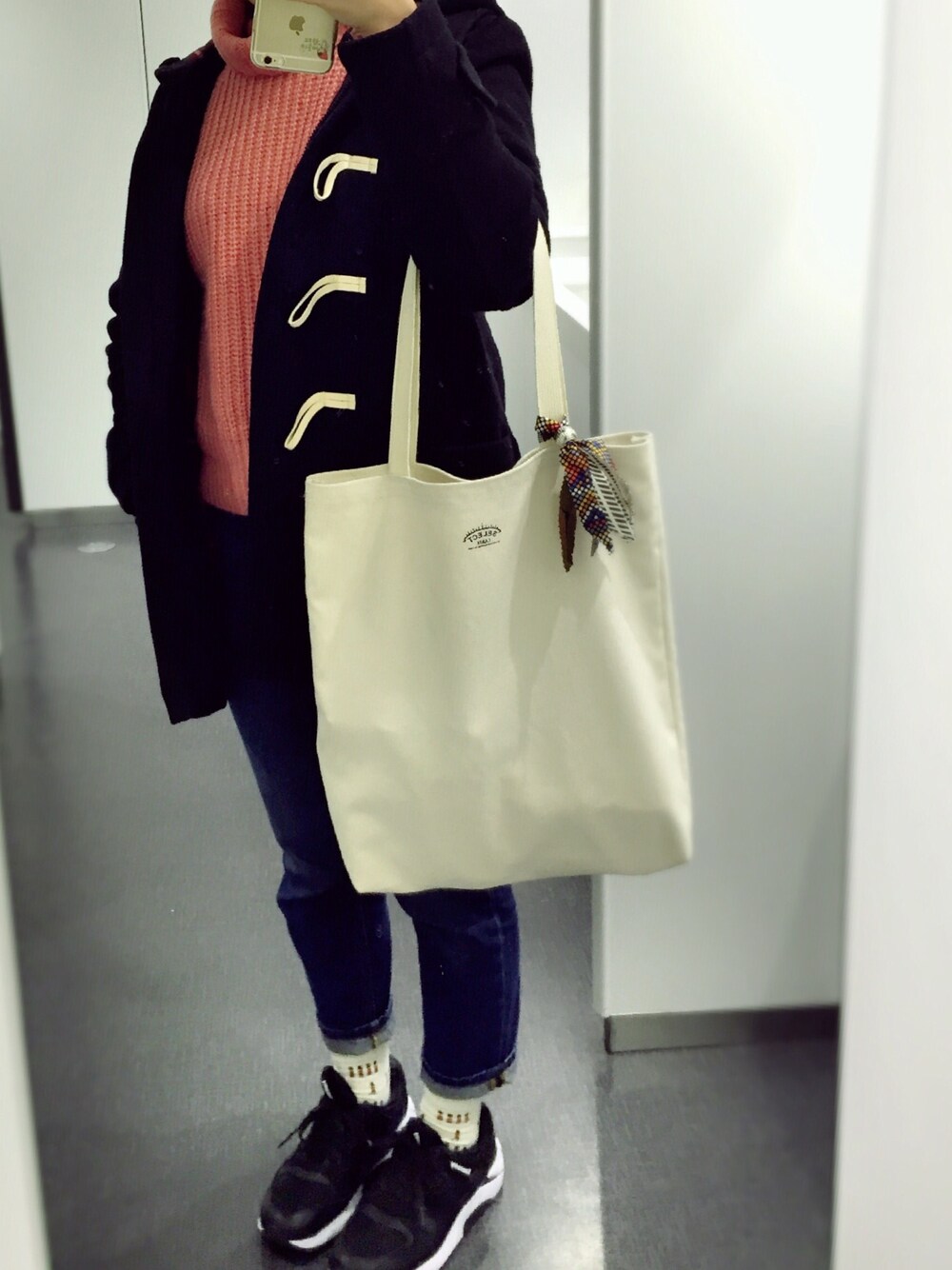 今年入って初の大学だから、とにかく楽な服装で。笑 タートルネック、本当はサーモンピンクです。( 色の選択欄に無かったㅜㅜ ) 靴下が兵隊さんでかわいい!