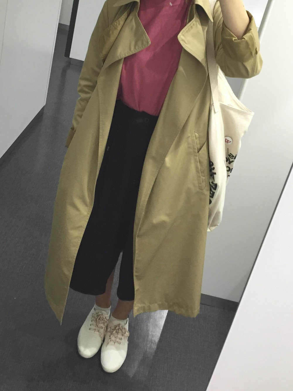 大学の講義室は寒いのでトレンチコートは大活躍中です😂 KBFのトレンチコートはセールで¥8500で購入できました! 羽織るだけでかっこいいし、濃い目の色だからお気に入りです🌼 ピンクのTシャツは韓国( ホンデ )で買ったものです🇰🇷 コート羽織ってるから分からないけど ゆったりした作りです! 2枚で¥2000くらいだったかな?? もうちょっと高かったかな?安かったかな? とにかく安かったのには間違いないです。笑 GUのスニーカーはALAND( 韓国 ) で買った靴ひもに変えました✌🏻️