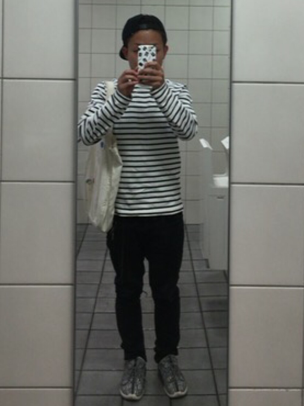 ご飯を食べに。 白黒でまとめてみた。 足元はグレーを入れつつ統一感を。