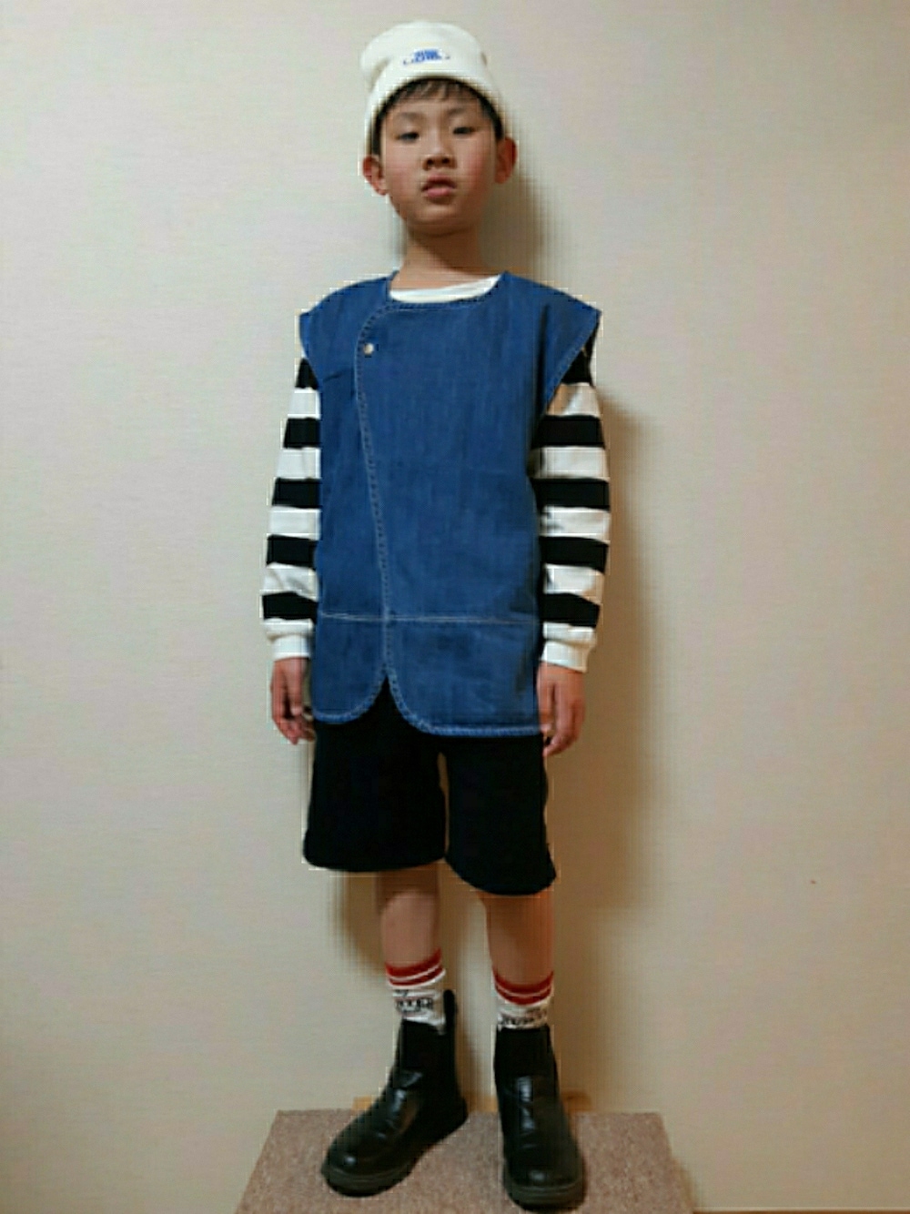 ご覧いただきありがとうございます✨ 去年は大きすぎたデニムベストがやっと着られるようになりました! ポイントはソックスの赤ラインです。