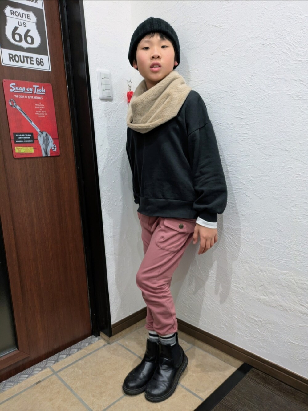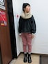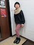 ご覧いただきありがとうございます✨ 首元が寒かったのでスヌードを🥰 ピンクのパンツもかわいい🩷🖤