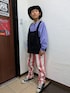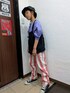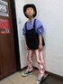 ご覧いただきありがとうございます✨ 赤×紫❤️💜を黒で締めました🖤 このストライプのパンツが1つ入るだけでかわいいです🥰 上半身が💜🖤で少し重たいので袖をまくって抜け感を👍