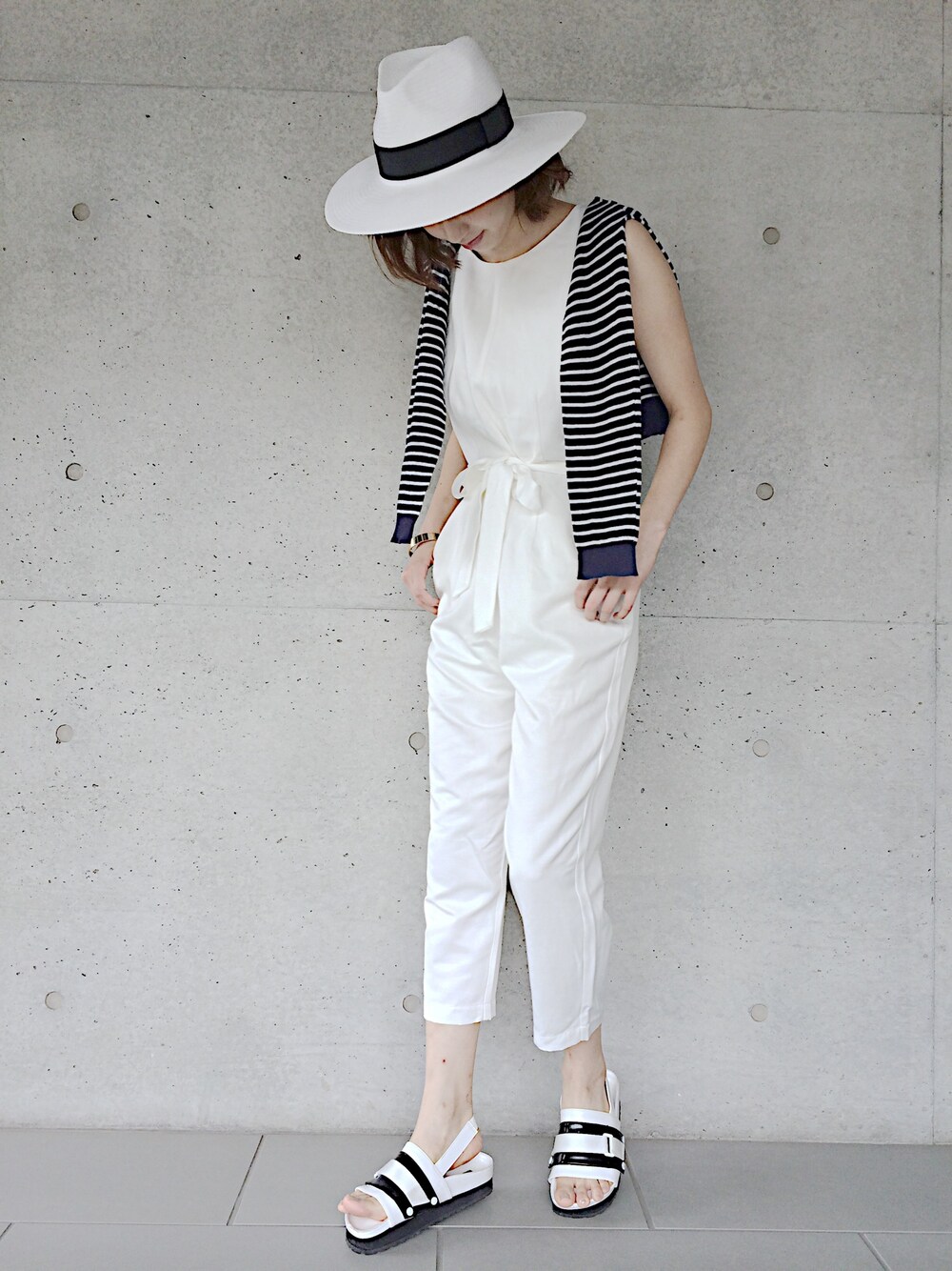 一目惚れしたコンビネゾンは、 約3,990円! とてもお買い得でした♡ オールホワイトに ボーダーカーディガンをONして 二の腕カバー効果も🙆 もうすぐ7月ですね! いつもSAVE&いいね ありがとうございます(;_;)!
