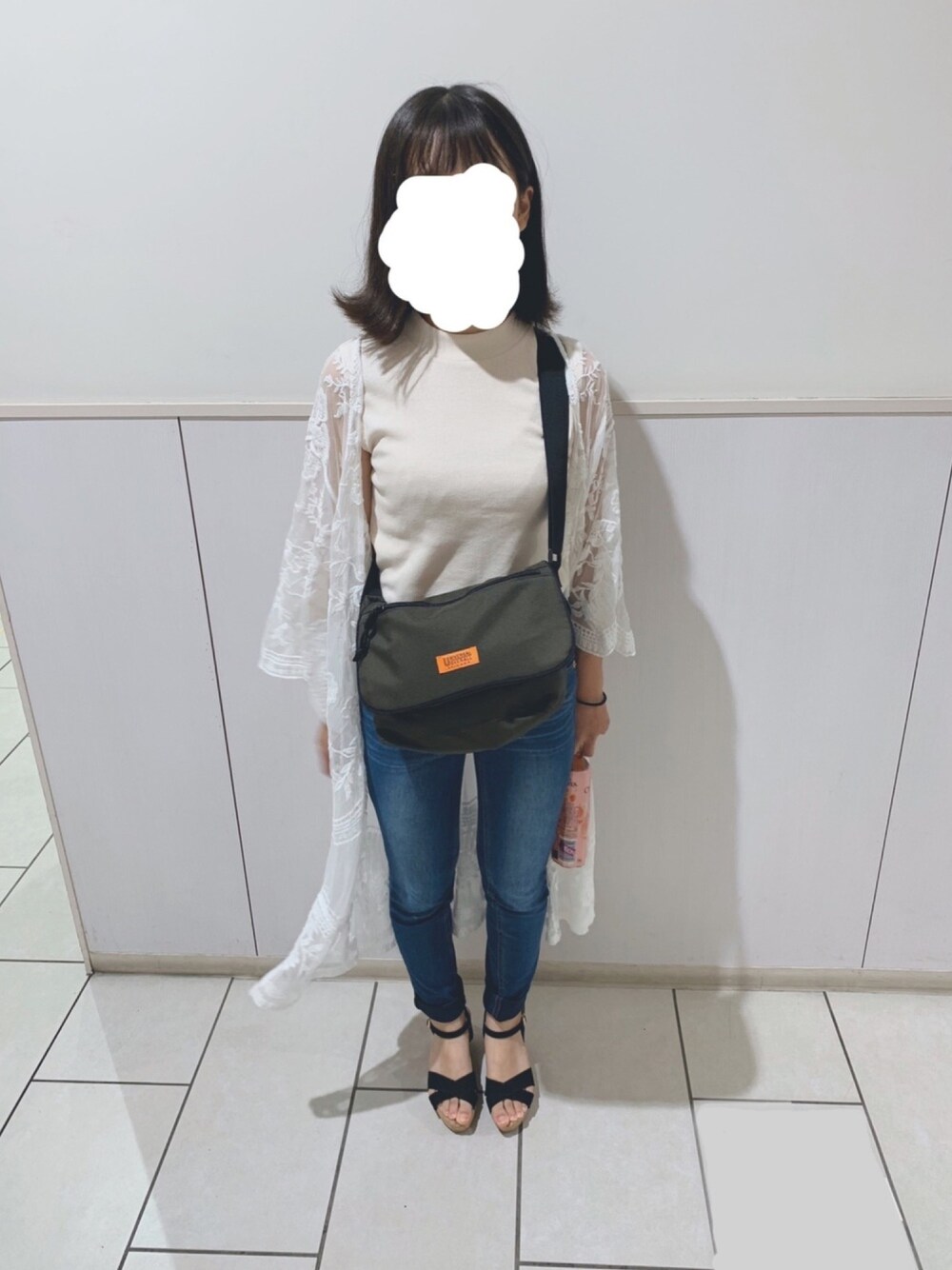 縁のショルダーバッグ「UNIVERSAL OVERALL フラップミニショルダー」を使ったコーディネート