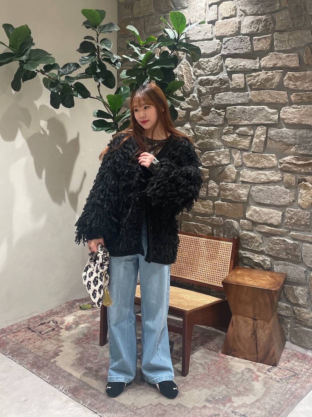 yuuka520(BAYFLOW イオンモール大高店)のハンドバッグ「※[ペットボトルも入る]プリントベルベット巾着」を使ったコーディネート