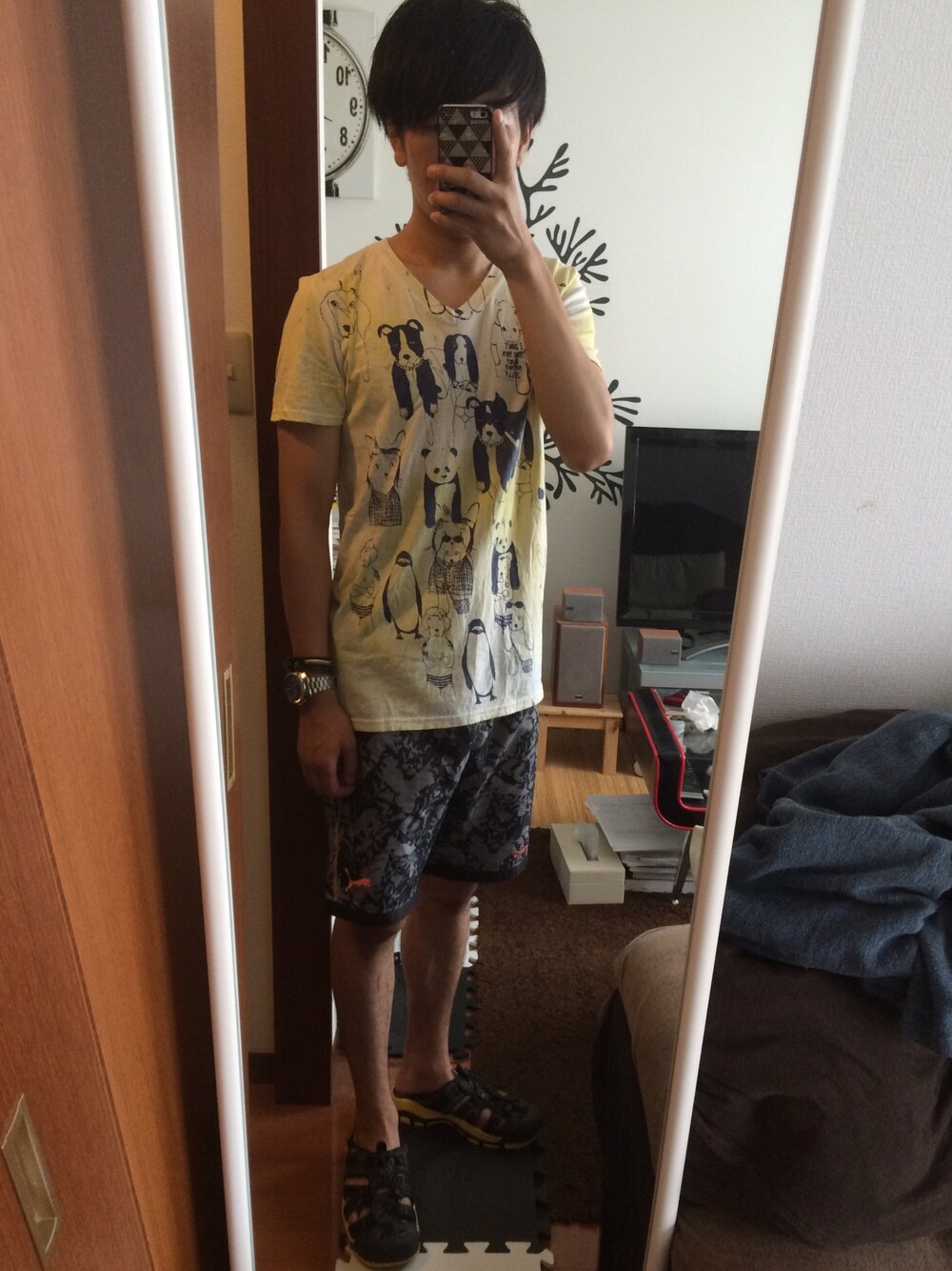 こんにちは! 暑いですね! 今日はTシャツとハーフパンツとサンダルでコーデしました! めっちゃ楽ですよ!