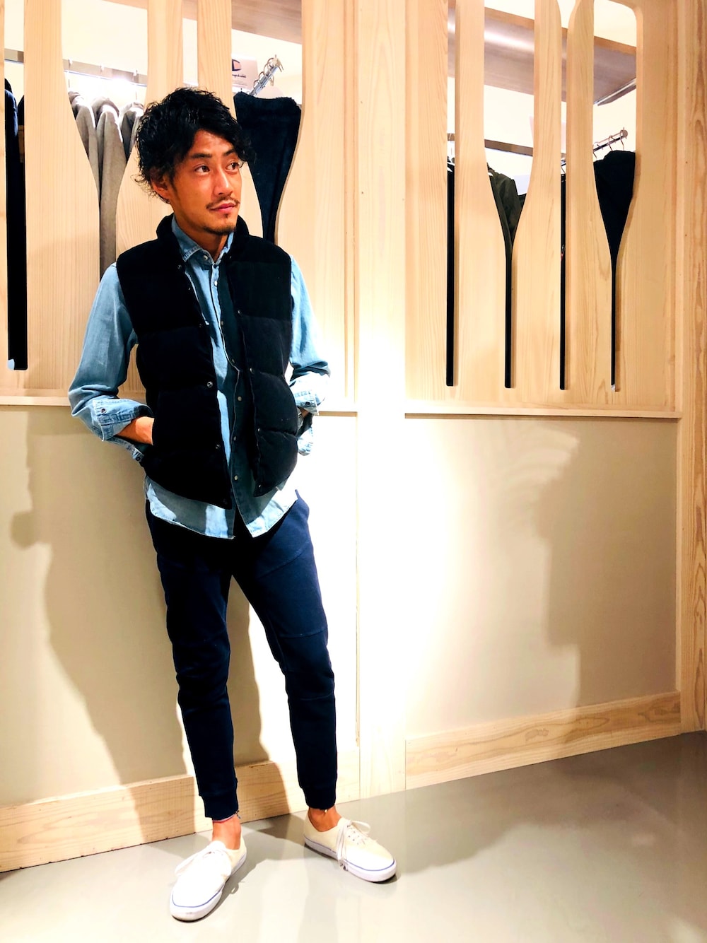 デニムシャツとコーデュロイベスト!!