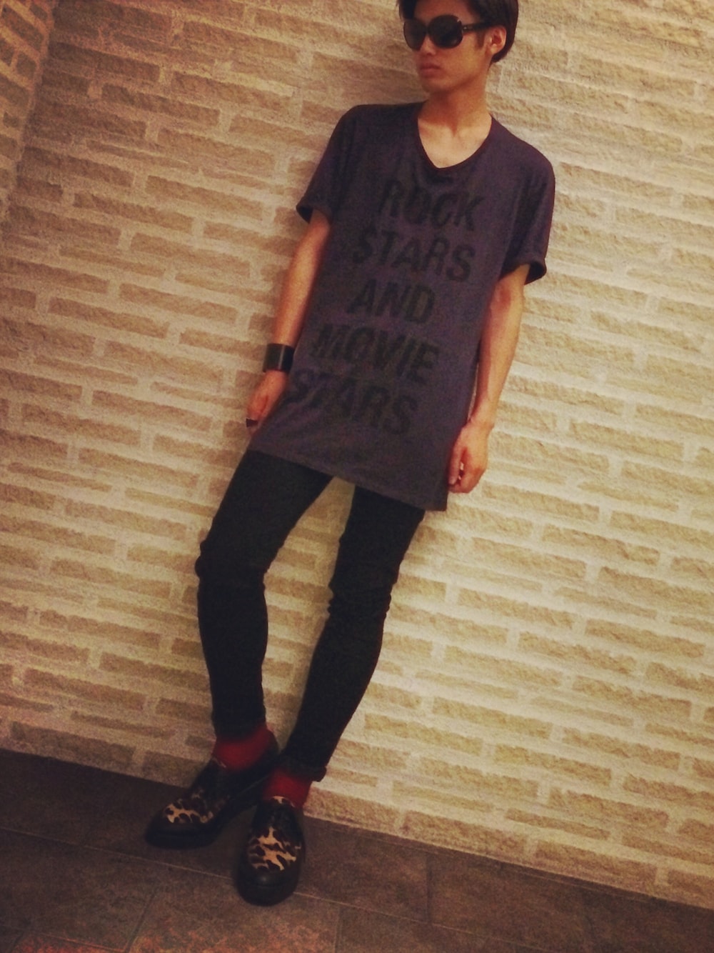 T-shirt:Ladmusician Pants:uniqlo Socks:uniqlo Shoes:Ladmusician Bracelet:Ray beams Sunglass:Rayban Ring:MartinMalgiera