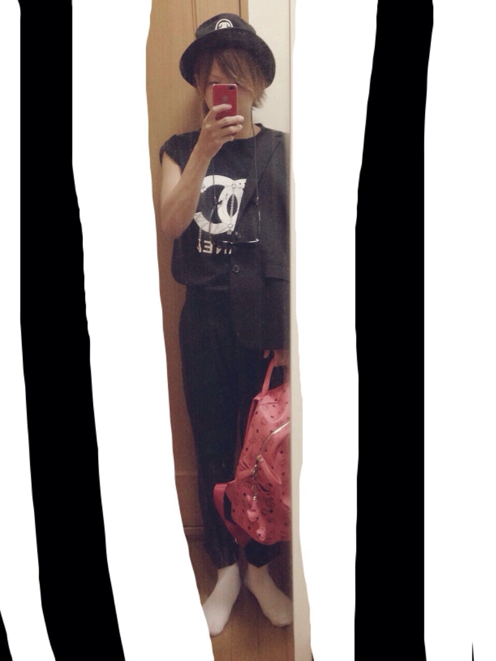 モノトーンです。 mcmはこの黒の色違いです。 リュックを差し色でエッジをきかして、 あとはモノトーンでシンプルにおさえました!