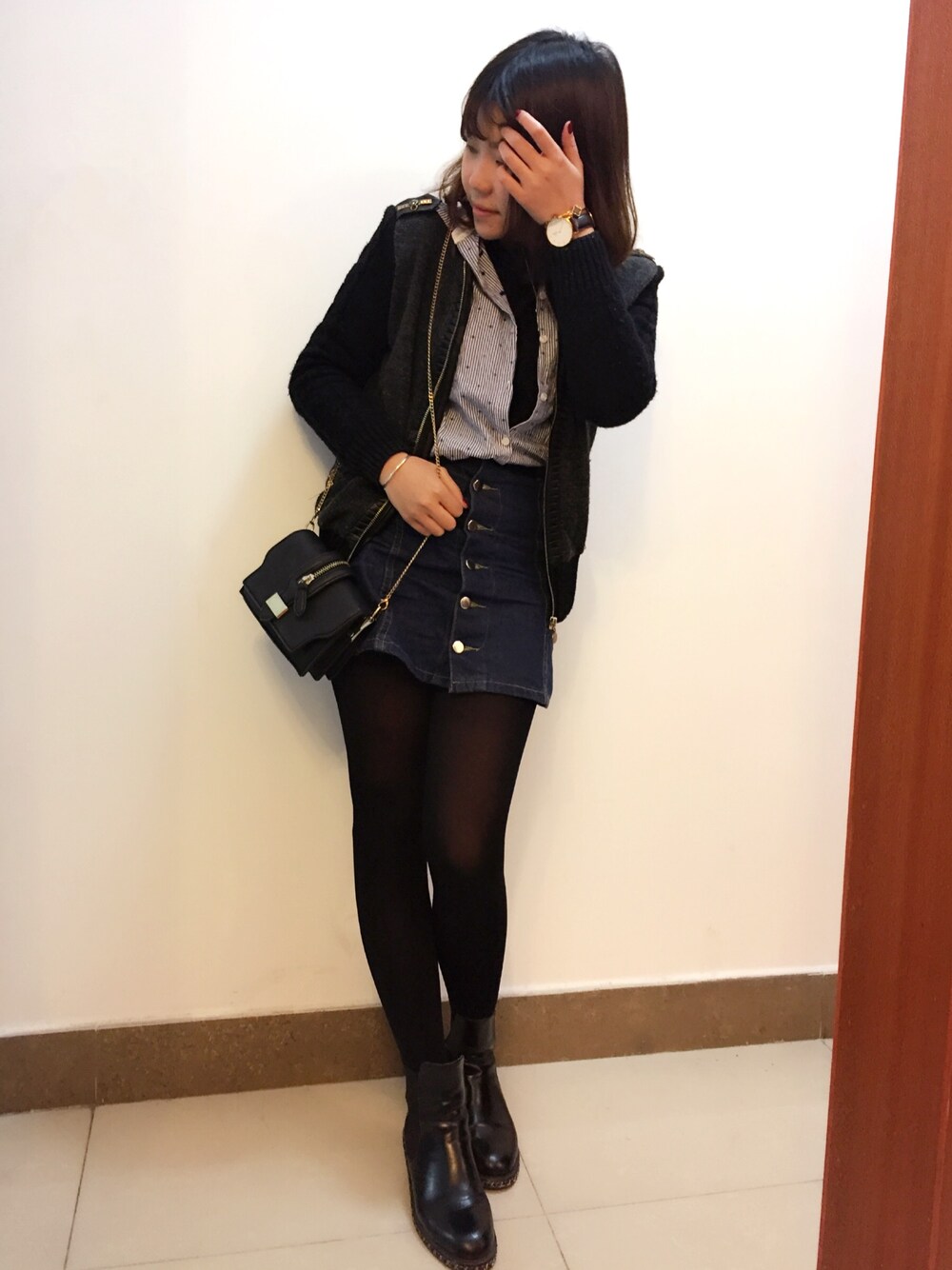 yamのアナログ腕時計「Daniel Wellington 'Classic Bristol' Leather Strap Watch, 40mm」を使ったコーディネート