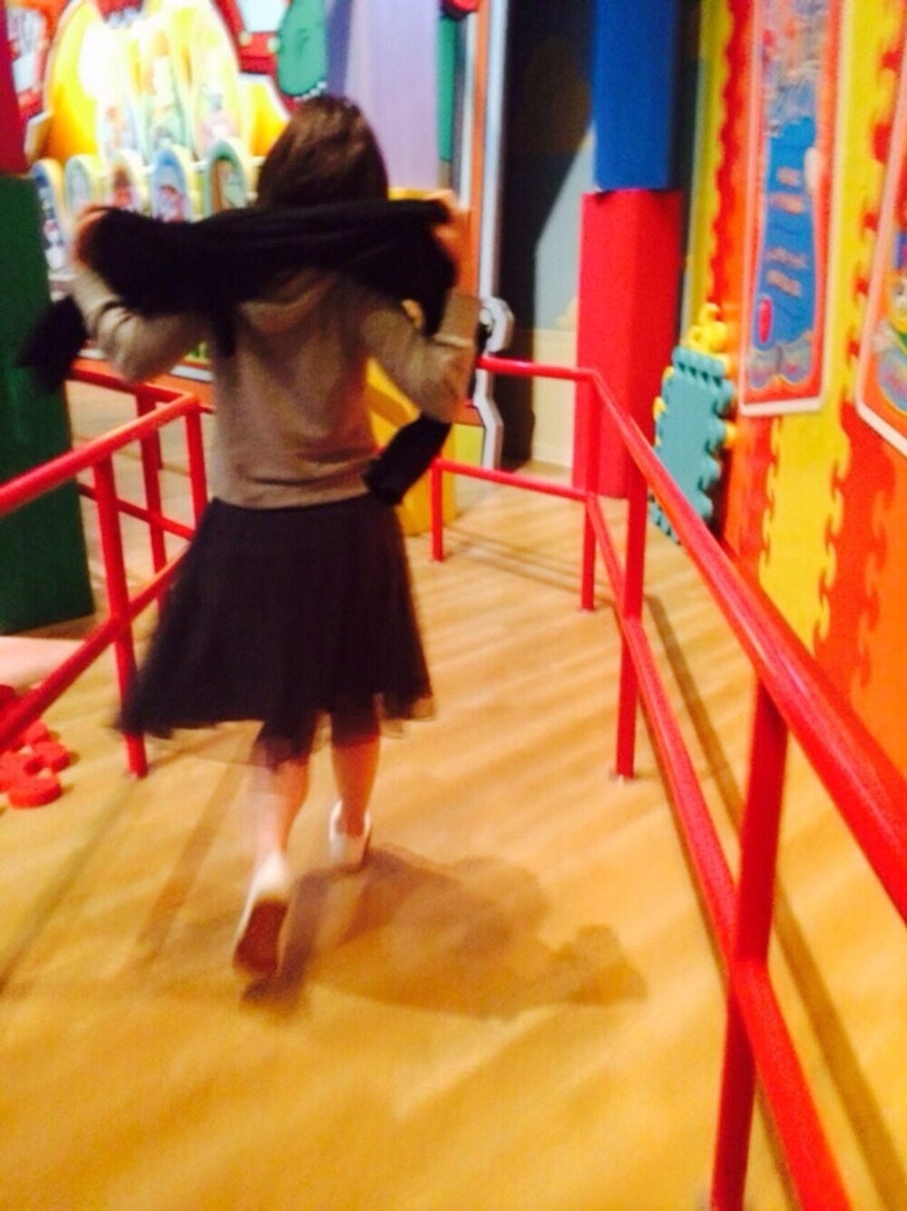 ユニクロキッズのミッキーのスウェットにブルーグレーみたいなスカート! 白くつ! ディズニー楽しかった\(^o^)/
