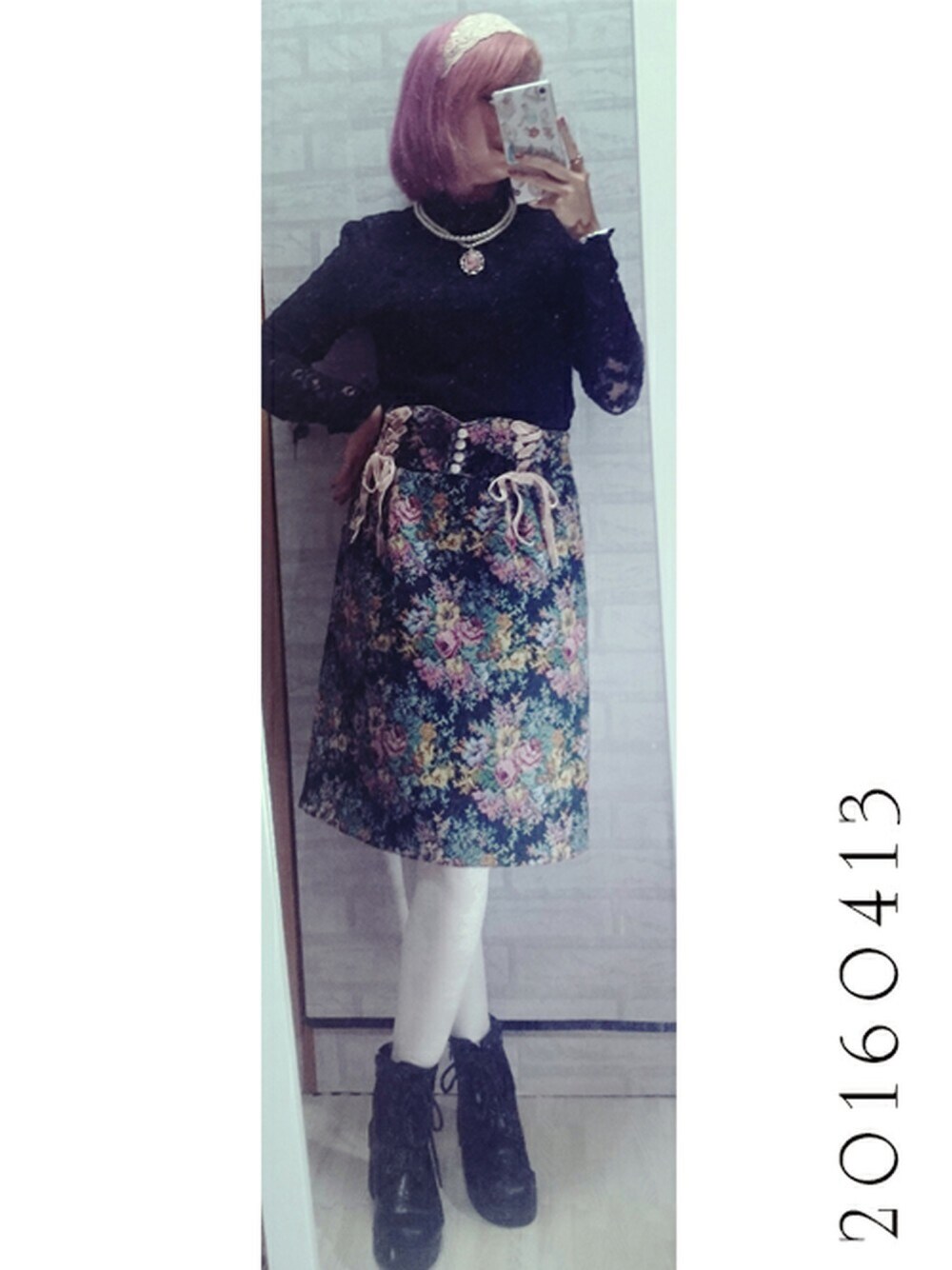ウエストレースアップゴブランタイトスカート
