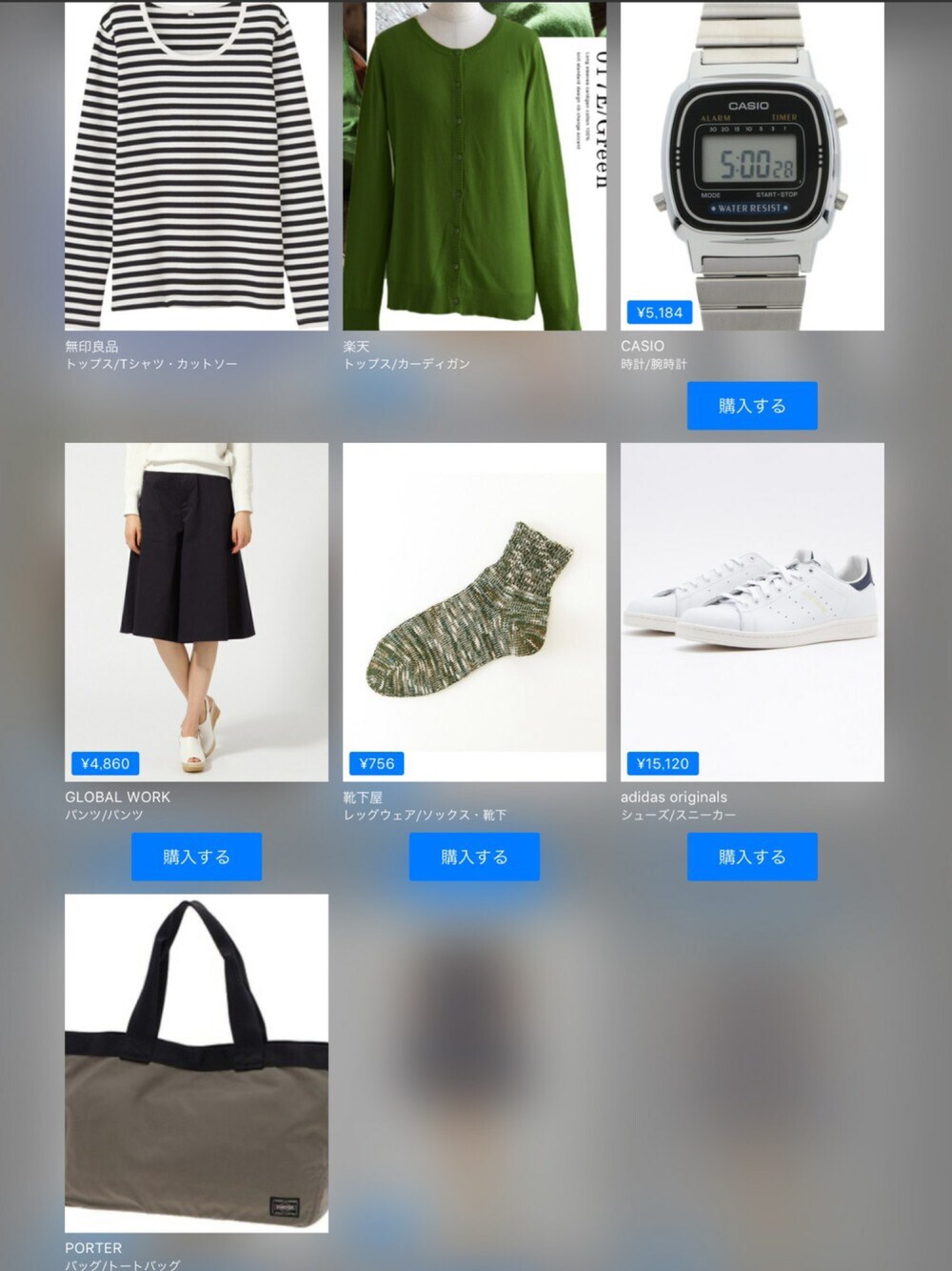 無印良品楽天CASIO¥5,280GLOBAL WORK¥4,950靴下屋¥770adidas Originals¥15,400PORTERこの画像から似たアイテムを検索できます1535お気に入り (0)50yu.maさんへのコメントNO COMMENTコメントはスマートフォン用アプリからご利用できます着用アイテム無印良品無印良品Tシャツ/カットソー (ホワイト系)Tシャツ/カットソー探すZOZOTOWNで探す楽天楽天カーディガン/ボレロ (グリーン系)カーディガン/ボレロ探すZOZOTOWNで探す¥5,280CASIOCASIOデジタル腕時計 (シルバー系)デジタル腕時計サイズ:FREE着用コーデ:208件探すZOZOTOWNで探す¥4,950GLOBAL WORKGLOBAL WORKその他パンツ (ブルー系)その他パンツサイズ:MEDIUM着用コーデ:40件探すZOZOTOWNで探す¥770靴下屋靴下屋レッグウェア (グリーン系)レッグウェアサイズ:22.0~24.0cm着用コーデ:8件商品を見るこのアイテムを購入する¥15,400adidas Originalsadidas Originalsスニーカー (ホワイト系)スニーカーサイズ:23.5cm着用コーデ:1076件探すZOZOTOWNで探すPORTERPORTERポーター ラウンド トートバッグトートバッグ (ベージュ系)トートバッグ探すZOZOTOWNで探すyu.maのTシャツ/カットソーを使ったコーディネート2016..4262016.4.26着用ブランド無印良品CASIOGLOBAL WORK靴下屋adidas OriginalsPORTERタグ#シンプル#ボーダーTシャツ#みどりがすき。#ウエストイン#ガウチョパンツモデル情報女性・156cmショートヘアー似ているアイテム無印良品 × Tシャツ/カットソーCASIO × デジタル腕時計GLOBAL WORK × その他パンツ靴下屋 × レッグウェアadidas Originals × スニーカーPORTER × トートバッグyu.ma@yuumaa / 156cm / WOMEN / ミディアムヘアー0コーディネート0フォロワー注目のコーディネートアプリでもっと見るもっと見る