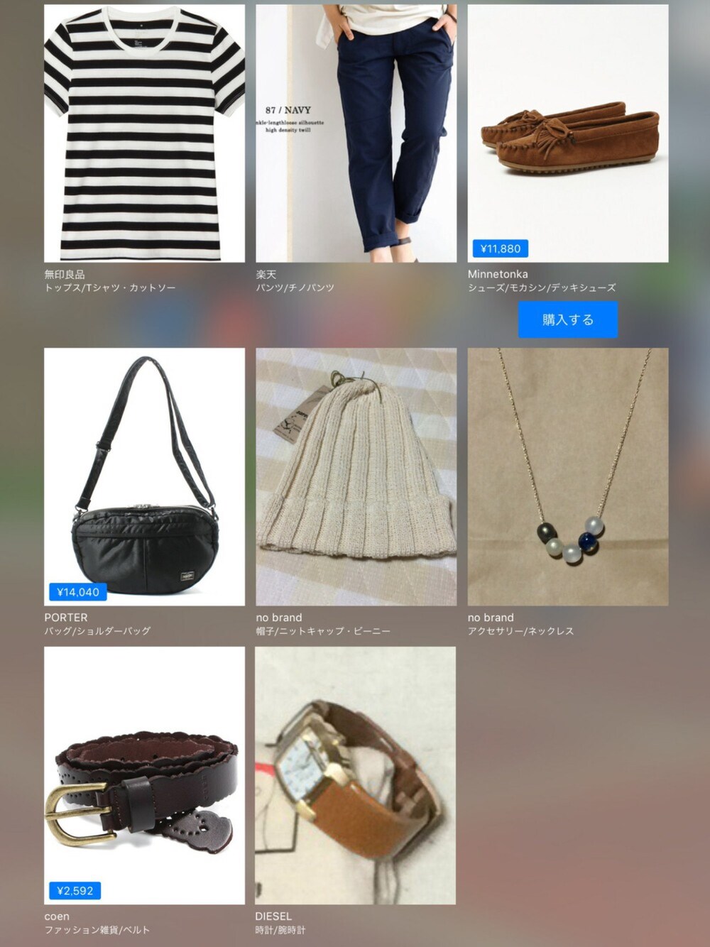 無印良品楽天no brandno brandPORTER¥14,300Minnetonka¥12,100DIESELcoen¥2,640この画像から似たアイテムを検索できます1167お気に入り (0)70yu.maさんへのコメントNO COMMENTコメントはスマートフォン用アプリからご利用できます着用アイテム無印良品無印良品Tシャツ/カットソー (ホワイト系)Tシャツ/カットソー探すZOZOTOWNで探す楽天楽天チノパンツ (ブルー系)チノパンツ探すZOZOTOWNで探すno brandno brand綿麻キャップニットキャップ/ビーニー (ホワイト系)ニットキャップ/ビーニー探すZOZOTOWNで探すno brandno brandネックレス (ホワイト系)ネックレス探すZOZOTOWNで探す¥14,300PORTERPORTERショルダーバッグ (ブラック系)ショルダーバッグサイズ:FREE着用コーデ:7件探すZOZOTOWNで探す¥12,100MinnetonkaMinnetonkaモカシン/デッキシューズ (ブラウン系)モカシン/デッキシューズサイズ:6着用コーデ:86件探すZOZOTOWNで探すDIESELDIESELアナログ腕時計 (ブラウン系)アナログ腕時計探すZOZOTOWNで探す¥2,640coencoenベルト (ブラウン系)ベルトサイズ:フリー着用コーデ:31件探すZOZOTOWNで探すyu.maのTシャツ/カットソーを使ったコーディネート2016.5.29 ニット帽とネックレスは先週買いました。2016.5.29着用ブランド無印良品no brandPORTERMinnetonkaDIESELcoenタグ#シンプル#ボーダーTシャツ#チノパン#モカシン#ニット帽モデル情報女性・156cmショートヘアー似ているアイテム無印良品 × Tシャツ/カットソーno brand × ニットキャップ/ビーニーno brand × ネックレスPORTER × ショルダーバッグMinnetonka × モカシン/デッキシューズDIESEL × アナログ腕時計coen × ベルトyu.ma@yuumaa / 156cm / WOMEN / ミディアムヘアー0コーディネート0フォロワー注目のコーディネートアプリでもっと見るもっと見る