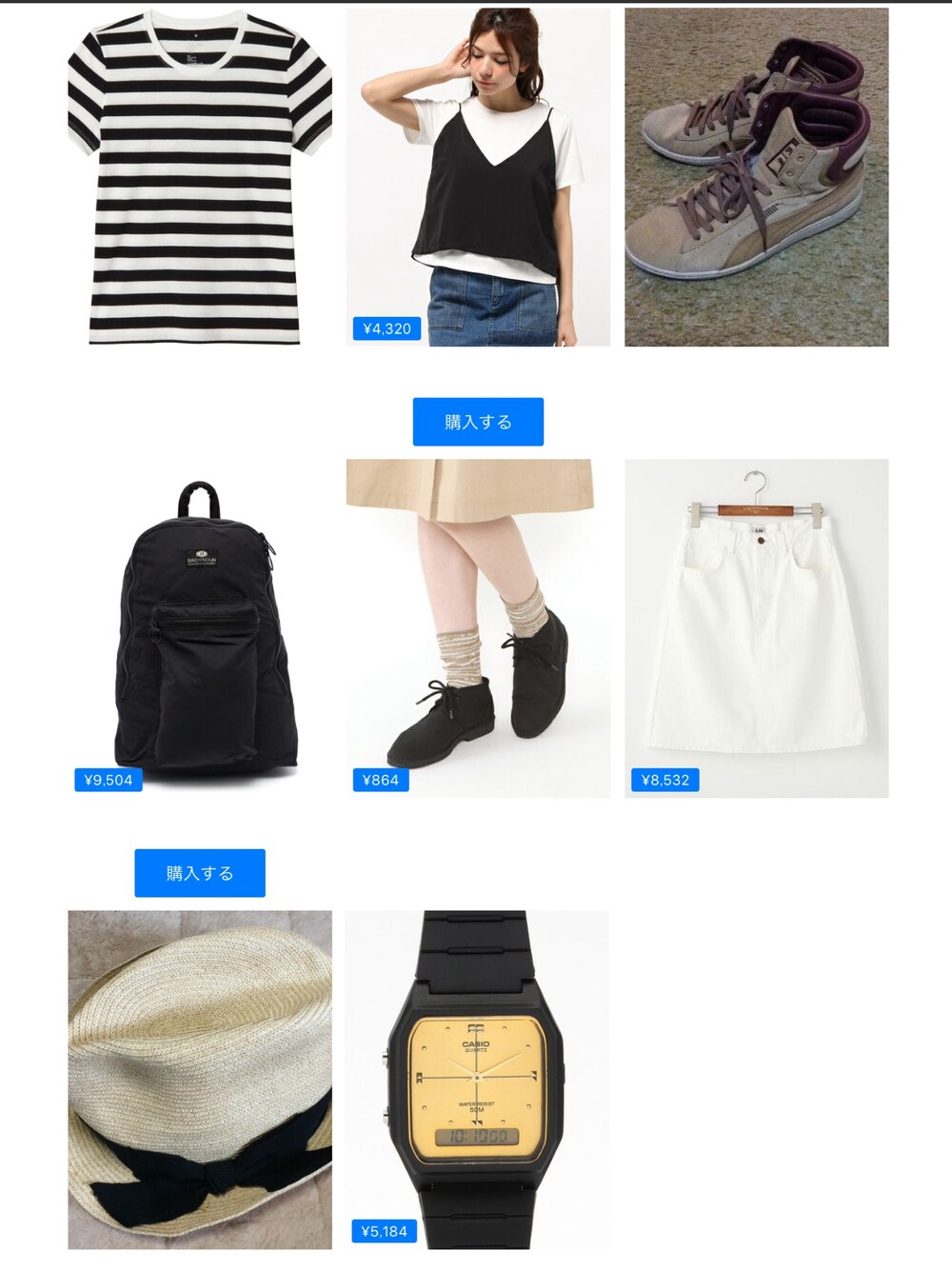 無印良品LOWRYS FARM¥4,400PUMABAG'n'NOUN¥9,680靴下屋¥880Lugnoncure¥8,690CASIO¥5,280襟立帽子店この画像から似たアイテムを検索できます24512お気に入り (2)120yu.maさんへのコメントNO COMMENTコメントはスマートフォン用アプリからご利用できます着用アイテム無印良品無印良品Tシャツ/カットソー (ホワイト系)Tシャツ/カットソー探すZOZOTOWNで探す¥4,400LOWRYS FARMLOWRYS FARMTシャツ/カットソー (ホワイト系)Tシャツ/カットソーサイズ:MEDIUM着用コーデ:252件探すZOZOTOWNで探すPUMAPUMAスニーカー (ベージュ系)スニーカー探すZOZOTOWNで探す¥9,680BAG'n'NOUNBAG'n'NOUNバックパック/リュック (ブラック系)バックパック/リュックサイズ:FREE着用コーデ:35件探すZOZOTOWNで探す¥880靴下屋靴下屋ソックス/靴下 (イエロー系)ソックス/靴下サイズ:22.0~24.0cm着用コーデ:14件探すZOZOTOWNで探す¥8,690LugnoncureLugnoncureデニムスカート (ホワイト系)デニムスカートサイズ:MEDIUM着用コーデ:7件探すZOZOTOWNで探す¥5,280CASIOCASIOアナログ腕時計 (ゴールド系)アナログ腕時計サイズ:FREE着用コーデ:64件商品を見るこのアイテムを購入する襟立帽子店襟立帽子店帽子 (ベージュ系)帽子探すZOZOTOWNで探すyu.maのTシャツ/カットソーを使ったコーディネート2016.8.17 若作り(自分比)2016.8.17着用ブランド無印良品LOWRYS FARMPUMABAG'n'NOUN靴下屋LugnoncureCASIOタグ#カジュアルコーデ#ボーダートップス#キャミソール#デニムスカート#ホワイトデニム#ハイカットスニーカー#麦わら帽子モデル情報女性・156cmミディアムヘアー似ているアイテム無印良品 × Tシャツ/カットソーLOWRYS FARM × Tシャツ/カットソーPUMA × スニーカーBAG'n'NOUN × バックパック/リュック靴下屋 × ソックス/靴下Lugnoncure × デニムスカートCASIO × アナログ腕時計yu.ma@yuumaa / 156cm / WOMEN / ミディアムヘアー0コーディネート0フォロワー注目のコーディネートアプリでもっと見るもっと見る