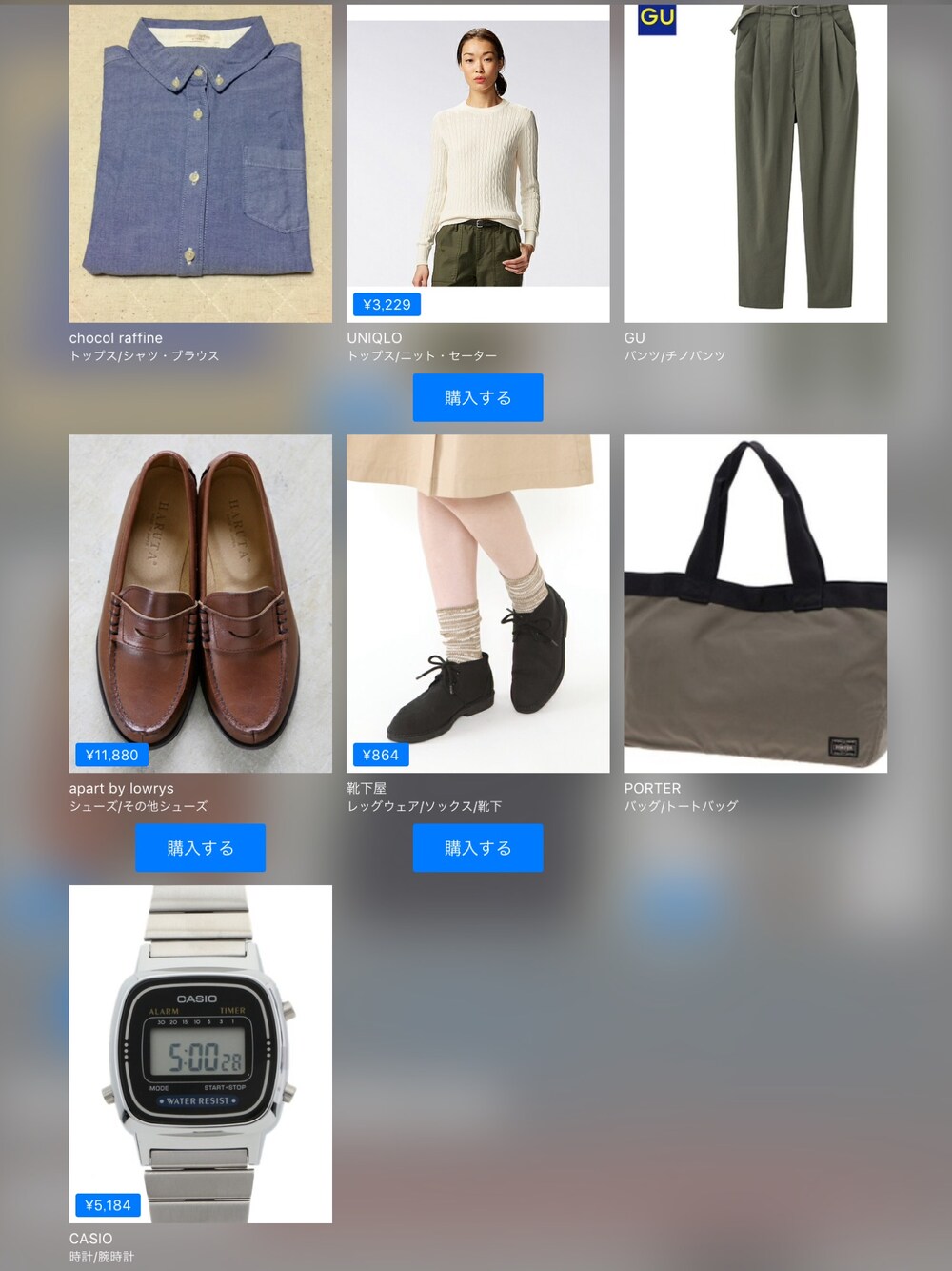 chocol raffineUNIQLO¥3,289GUA part by¥12,100靴下屋¥880PORTERCASIO¥5,280この画像から似たアイテムを検索できます1445お気に入り (0)50yu.maさんへのコメントNO COMMENTコメントはスマートフォン用アプリからご利用できます着用アイテムchocol raffinechocol raffineシャツ/ブラウス (ブルー系)シャツ/ブラウス探すZOZOTOWNで探す¥3,289UNIQLOUNIQLOニット/セーター (ホワイト系)ニット/セーターサイズ:M着用コーデ:824件探すZOZOTOWNで探すGUGUチノパンツ (グリーン系)チノパンツ探すZOZOTOWNで探す¥12,100A part byA part byローファー (ブラウン系)ローファーサイズ:MEDIUM着用コーデ:51件探すZOZOTOWNで探す¥880靴下屋靴下屋ソックス/靴下 (イエロー系)ソックス/靴下サイズ:22.0~24.0cm着用コーデ:14件探すZOZOTOWNで探すPORTERPORTERポーター ラウンド トートバッグトートバッグ (ベージュ系)トートバッグ探すZOZOTOWNで探す¥5,280CASIOCASIOデジタル腕時計 (シルバー系)デジタル腕時計サイズ:FREE着用コーデ:208件探すZOZOTOWNで探すyu.maのシャツ/ブラウスを使ったコーディネート2016.11.22016.11.2着用ブランドUNIQLOGUA part by靴下屋PORTERCASIOタグ#シンプルコーデ#ケーブルニット#ハイウエストパンツ#シャツ×ニット#ローファー#チープカシオモデル情報女性・156cmミディアムヘアー似ているアイテムUNIQLO × ニット/セーターGU × チノパンツA part by × ローファー靴下屋 × ソックス/靴下PORTER × トートバッグCASIO × デジタル腕時計yu.ma@yuumaa / 156cm / WOMEN / ミディアムヘアー0コーディネート0フォロワー注目のコーディネートアプリでもっと見るもっと見る