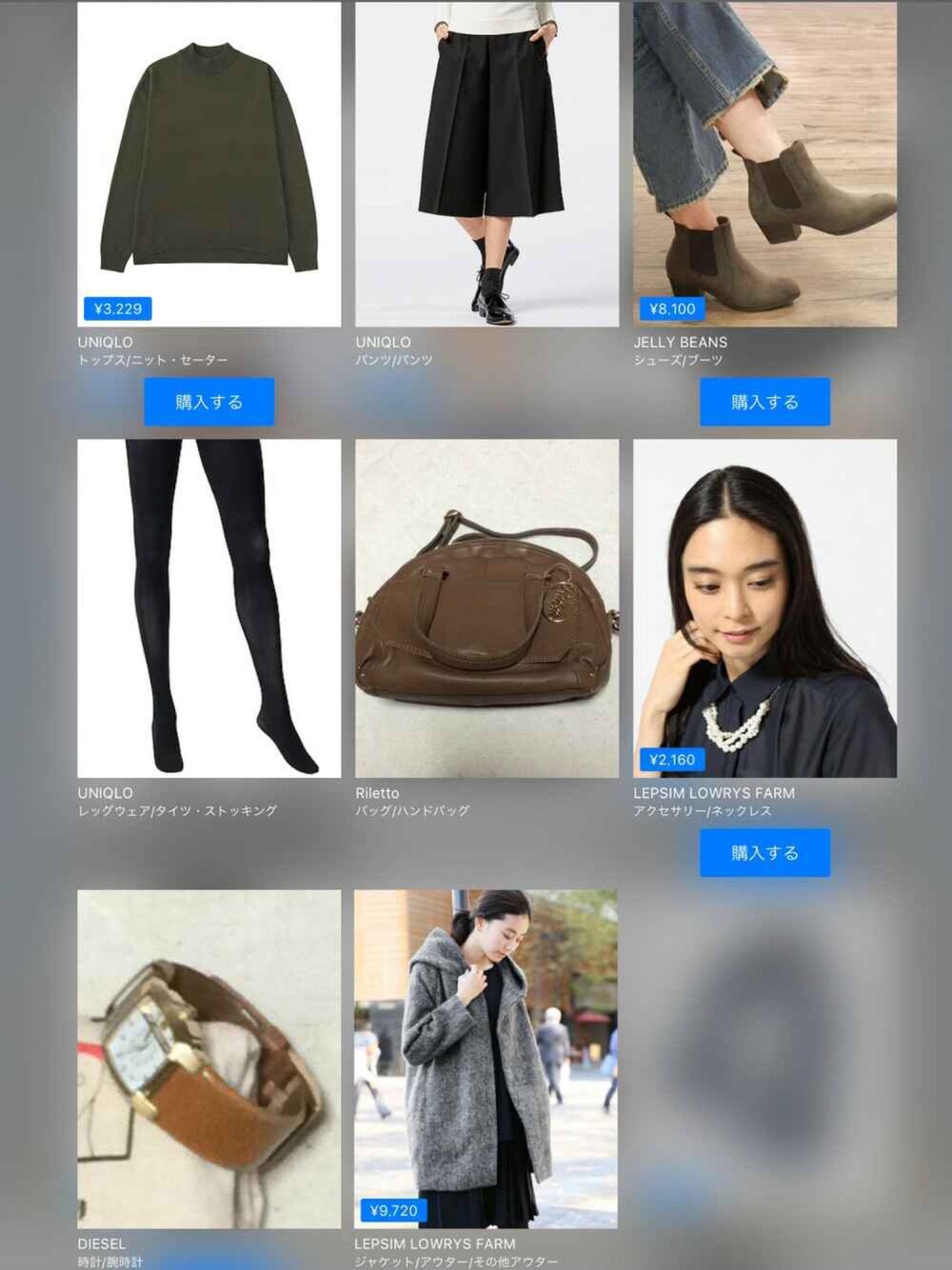 UNIQLO¥3,289UNIQLOJELLY BEANS¥8,250UNIQLORilettoLEPSIM¥2,200DIESELLEPSIM¥9,900この画像から似たアイテムを検索できます2047