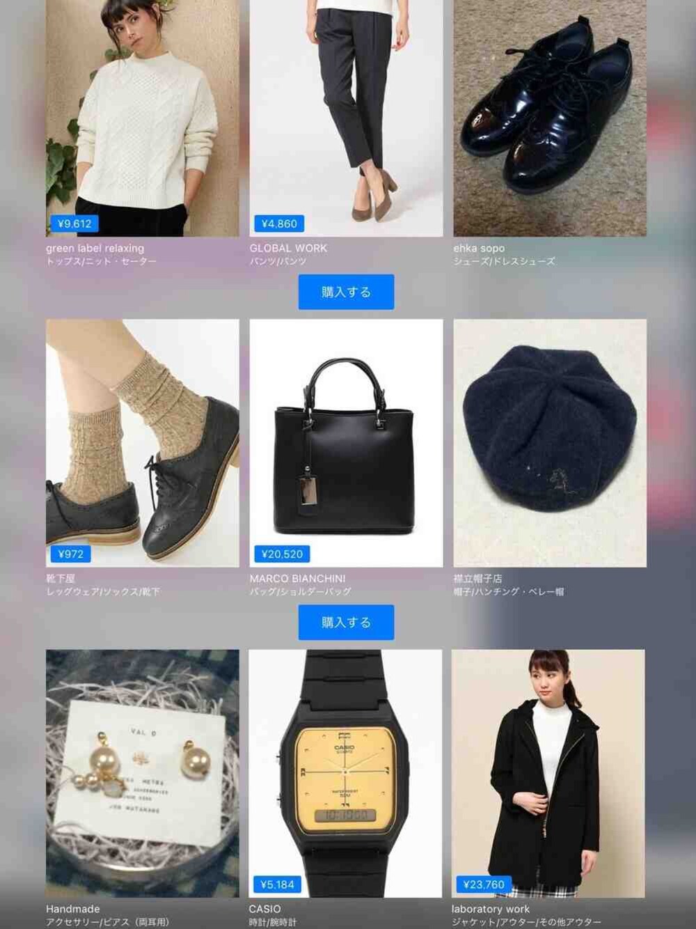 green label relaxing¥9,790GLOBAL WORK¥4,950ehka sopo靴下屋¥990MARCO BIANCHINI¥20,900襟立帽子店HandmadeCASIO¥5,280laboratory work¥24,200この画像から似たアイテムを検索できます26112