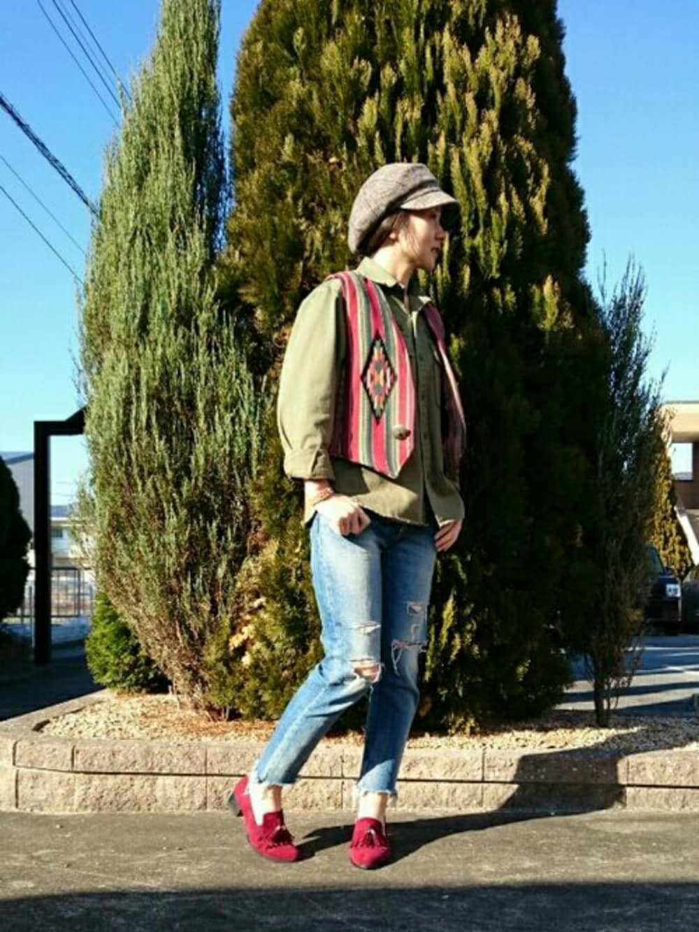 最近、古着屋👚👖さんに興味津々のゆーみんです☺ この間、新婚旅行で東京の下北沢の古着屋さん🎵 BIG TIME に行って来ました⤴ 古着屋さんの中でもそこそこ大きいSHOPだったので 見る物が沢山あってめっちゃ楽しかった🎶 そこで出逢ってしまった、オルテガ柄の ベスト✨裏表のデザインが違うんです😆✨ めっちゃ可愛くて✨😍✨即get✨✌ もっと、いろんな古着屋さんに行ってみたいと思った1日でした♥ バングルは、旦那さんとお揃いで買いました♥内側にその日の刻印を入れてもらいました😘これは、札幌の4プラのショッピングセンターのアクセサリーSHOPで購入🎵 これまた可愛くて気になってます😘 靴は、タッセルシューズ✨実は…旦那さん からのクリスマス🎄🎁なんですw♥ 旅行最終日の神戸で買ってもらいました😍 素敵な🎄🎁ありがとね😌大丈夫にします (*˘︶˘人)♡*。+ 後、小窓に旅行で横浜の赤レンガ倉庫に 行った時に撮った📷も載せました☺ 文章、ちょっと長くなってしまいスミマセン💦読んで頂いてありがとございます😂