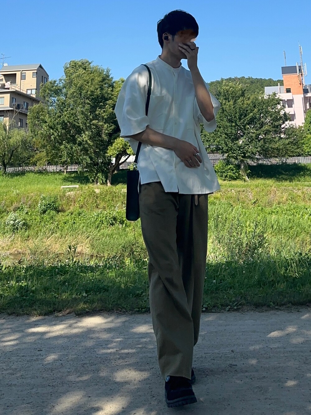 暑すぎなので半袖着ちゃいました トップスは昨年に2色買いしたもので今年もヘビロテする予定です🗓 タックインの予定がしっくりこず予定変更 カバンはパンツと、黒のリングは靴と合わせてます🔗